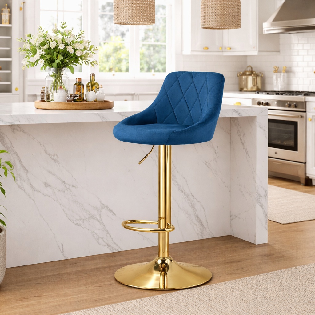 Scaun de bucatarie/bar, Artool, Kast, rotativ, catifea, bleumarin si auriu, 45.5x49x85-105 cm