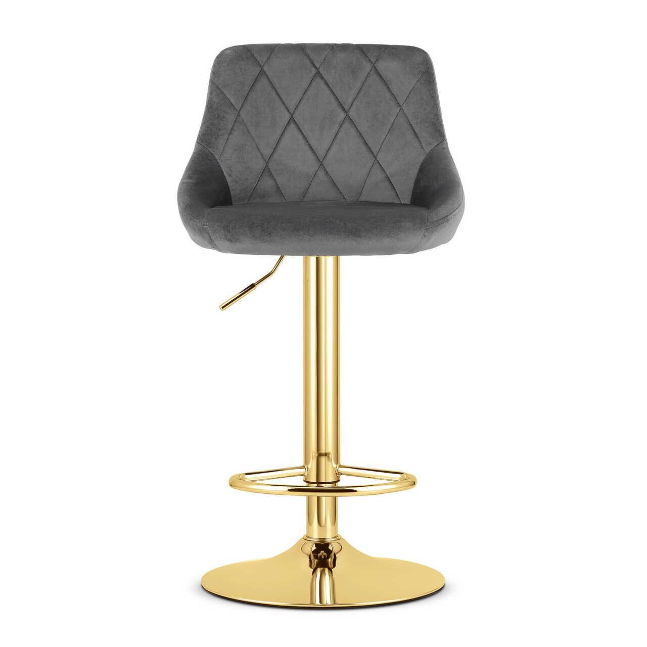 Scaun de bucatarie/bar, Artool, Kast, rotativ, catifea, gri si auriu, 45.5x49x85-105 cm