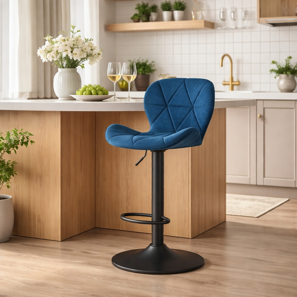 Scaun de bucatarie/bar, Artool, West, rotativ, catifea, bleumarin si negru, 46x48.5x90-111 cm