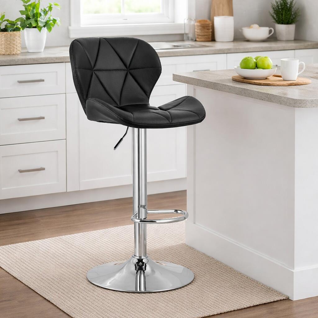 Scaun de bucatarie/bar, Artool, West, rotativ, piele ecologica neagra, picior metal argintiu, 46x48.5x90-111 cm