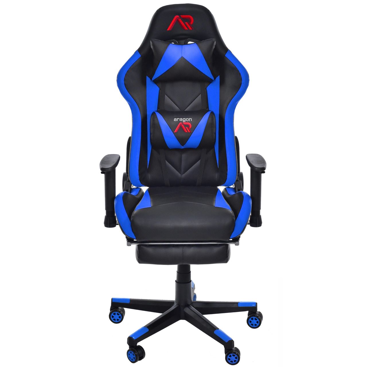 Scaun de gaming albastru-negru cu suport de picioare + mousepad cadou