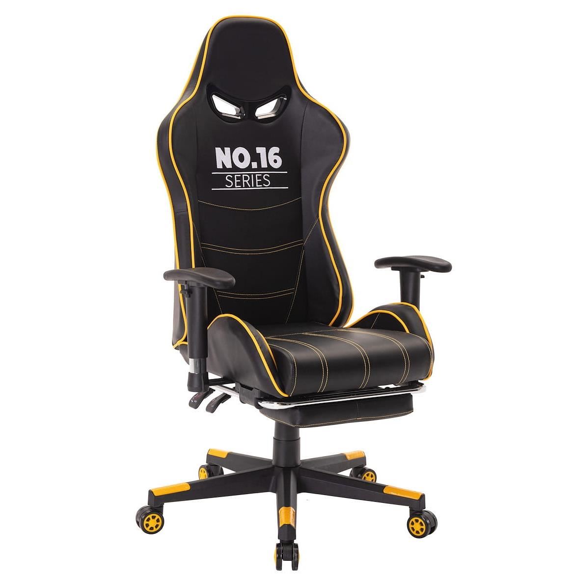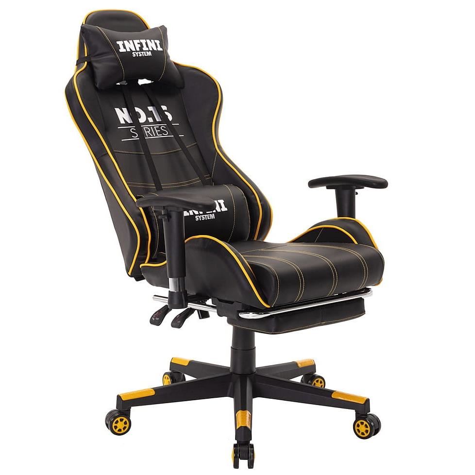 Scaun de gaming, cu suport de picioare, negru-galben, Infini no.16