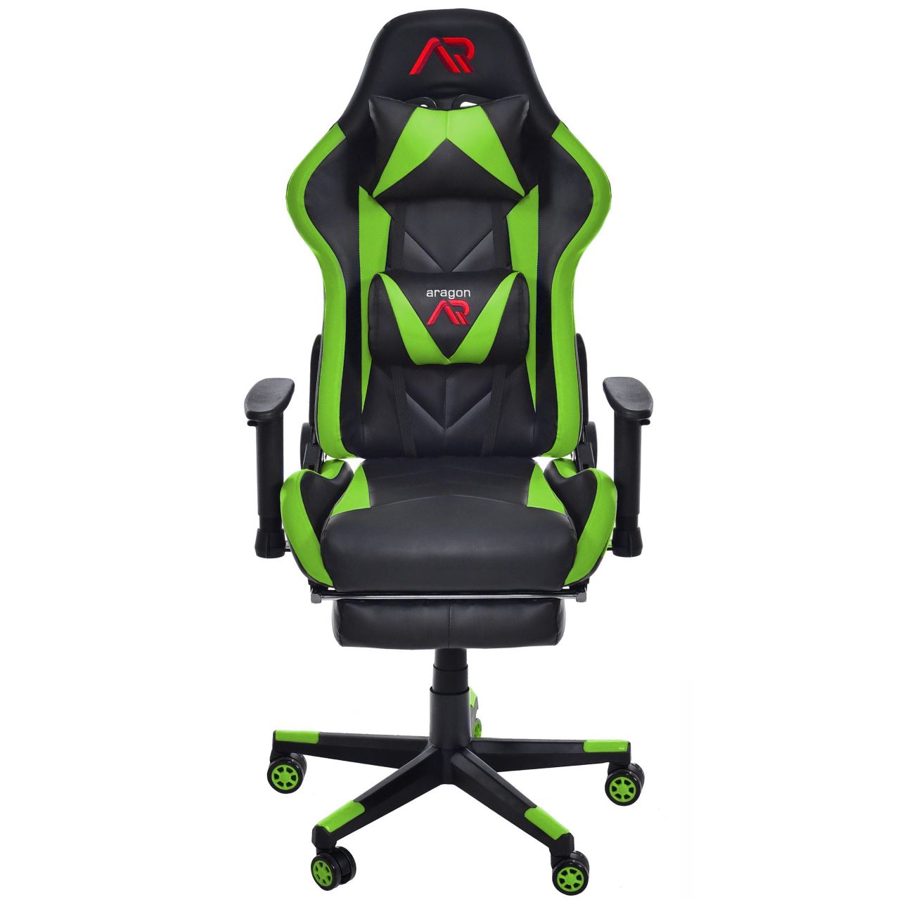 Scaun de gaming verde-negru cu suport de picioare + mousepad cadou