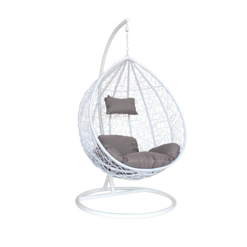 Scaun leagan suspendat, ratan sintetic, alb si gri, marime S, 90x99 cm, 194 cm