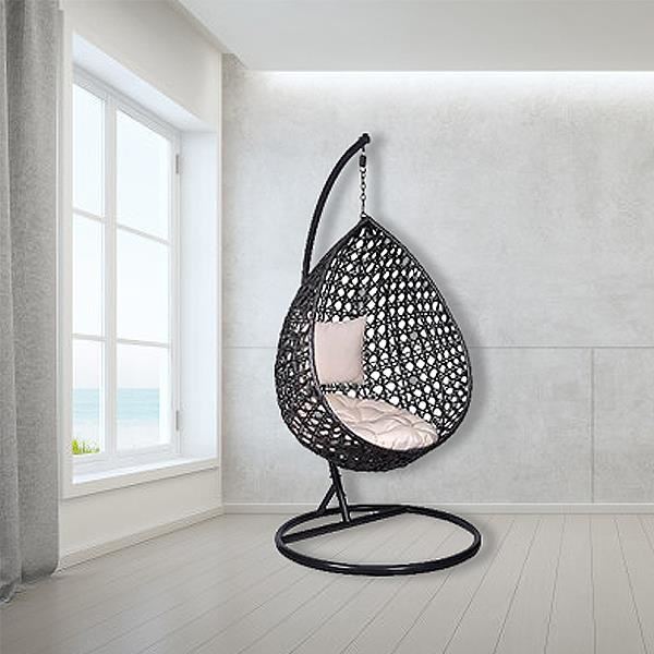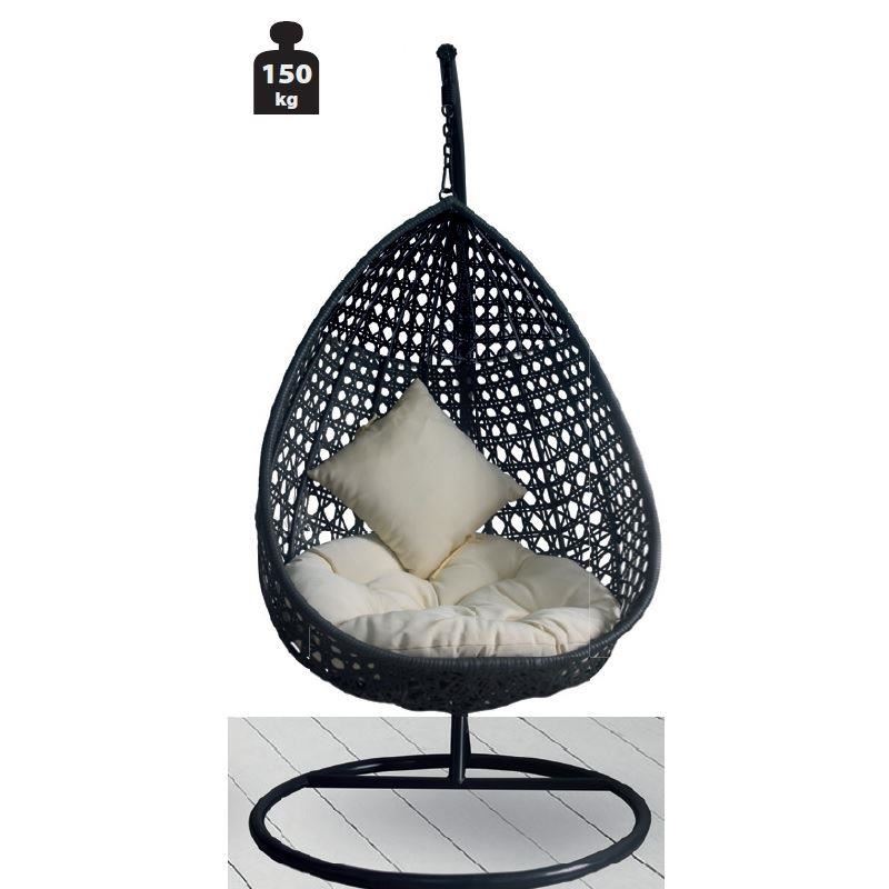 Scaun leagan suspendat, ratan sintetic, gri/crem, max 150 kg, Jakarta