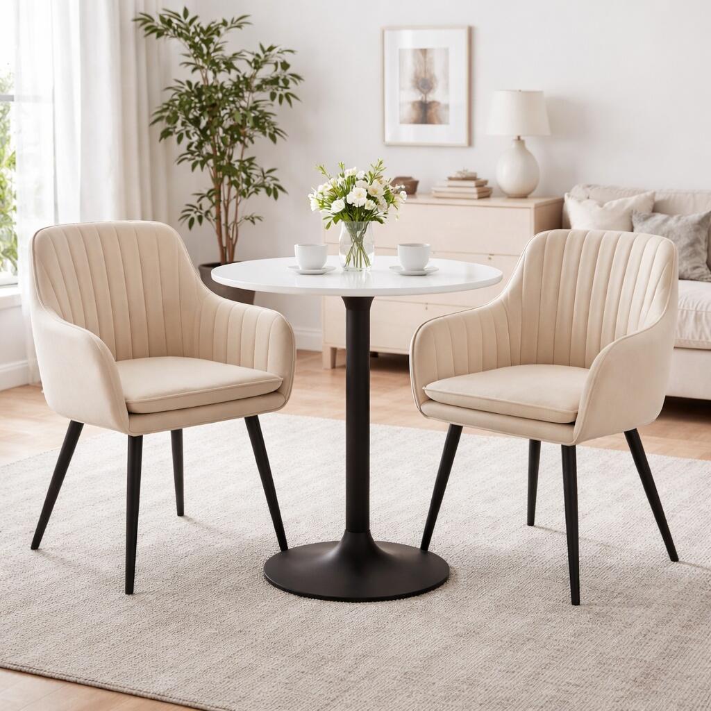 Scaun stil fotoliu bucatarie/living, Artool, Lugo, catifea, metal, bej si negru, 57.5x56.5x86.5 cm