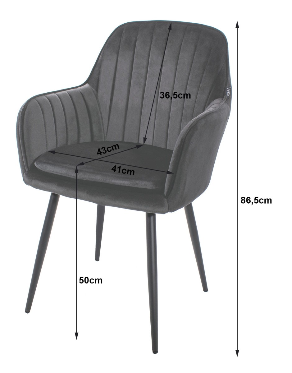 Scaun stil fotoliu bucatarie/living, Artool, Lugo, catifea, metal, gri si negru, 57.5x56.5x86.5 cm