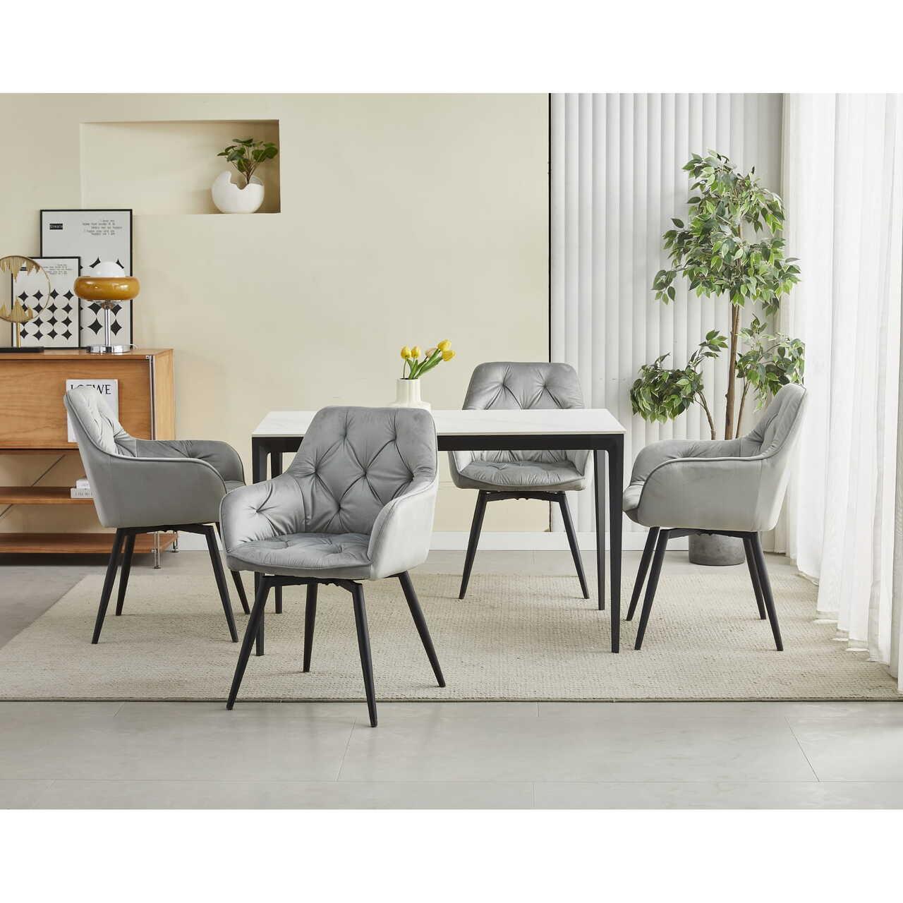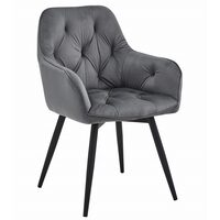Scaun stil fotoliu bucatarie/living, Artool, York, rotativ, catifea, metal, gri argintiu si negru, 56x61x84 cm