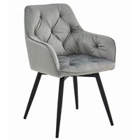 Scaun stil fotoliu bucatarie/living, Artool, York, rotativ, catifea, metal, gri inchis si negru, 56x61x84 cm