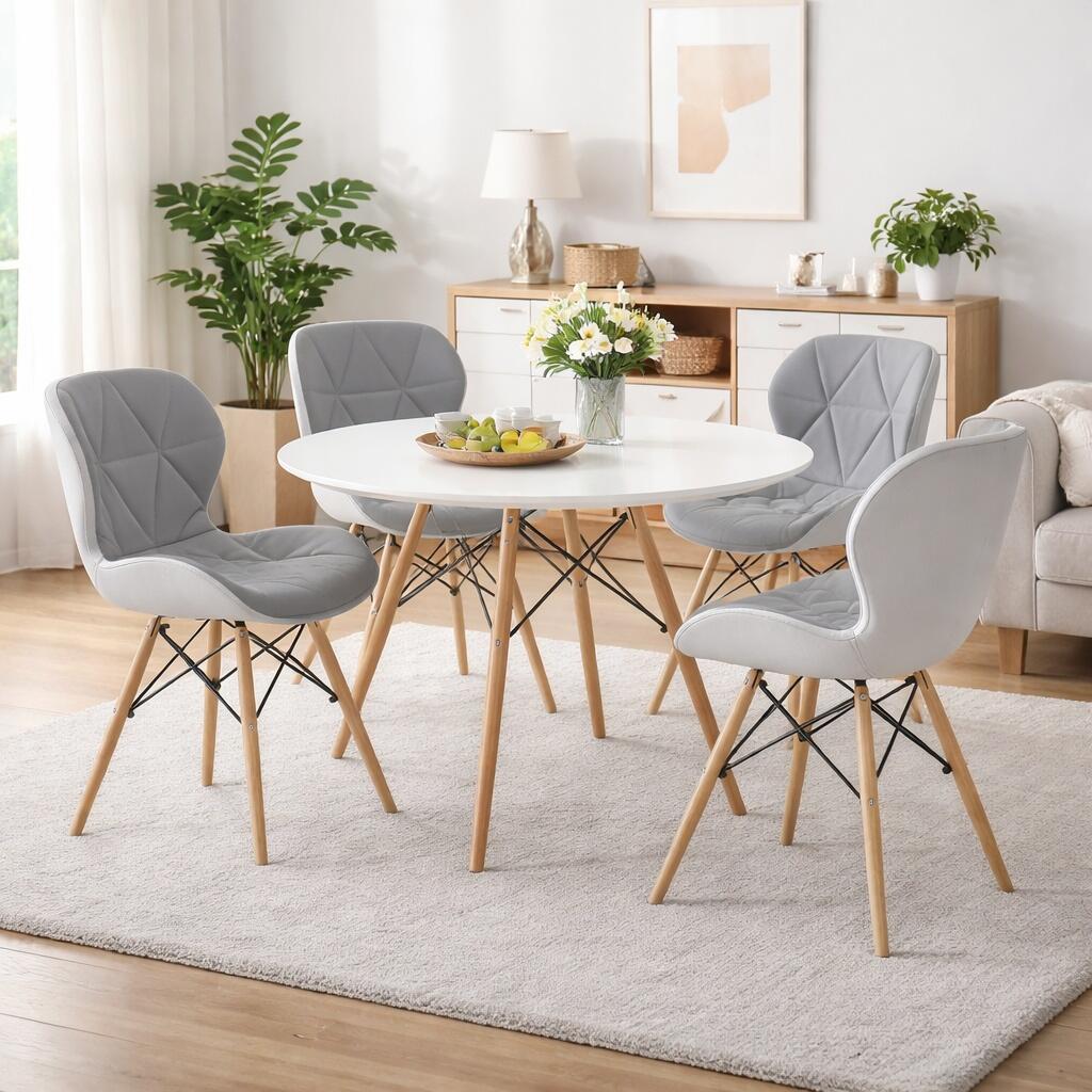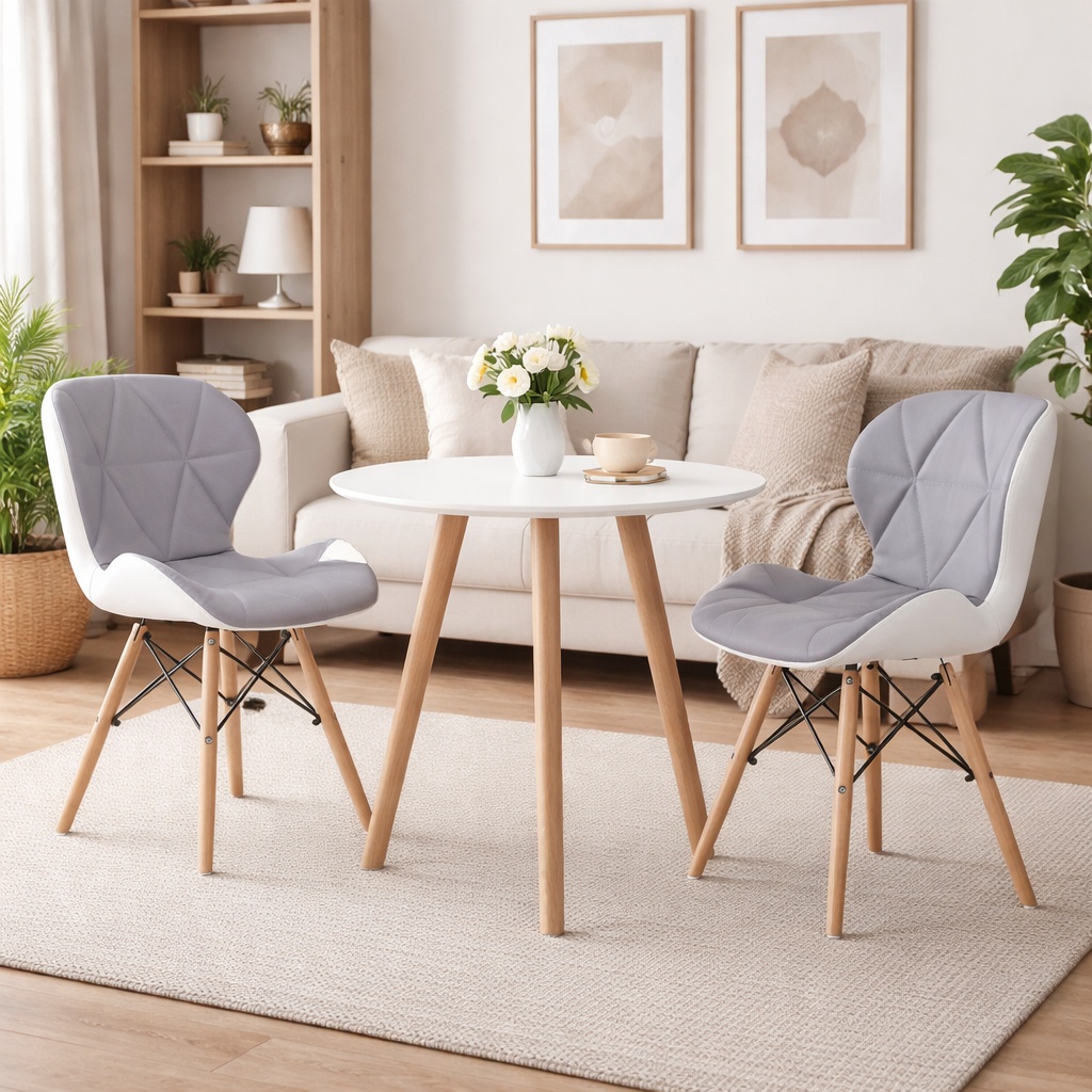 Scaun stil scandinav, Artool, Lago, piele ecologica gri si alba, picioare lemn natur, 47x52x73 cm