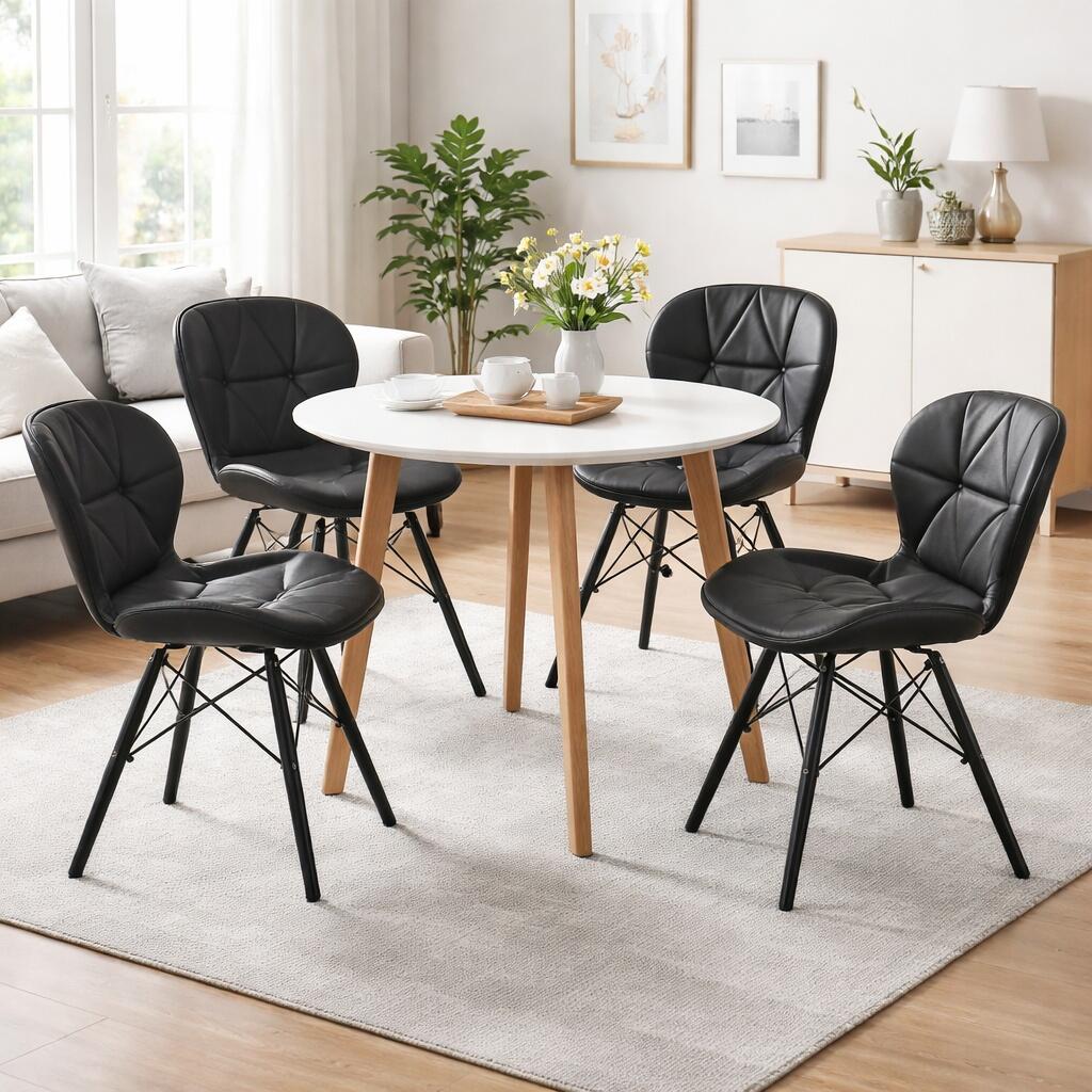 Scaun stil scandinav, Artool, Lago, piele ecologica neagra, picioare lemn negru, 47.5x52x74 cm