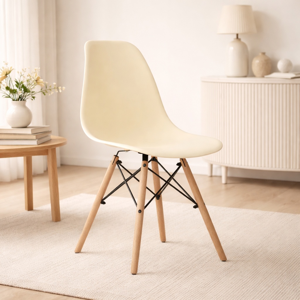 Scaun stil scandinav, Artool, Osaka, PP crem, picioare lemn natur, 46x54x81 cm