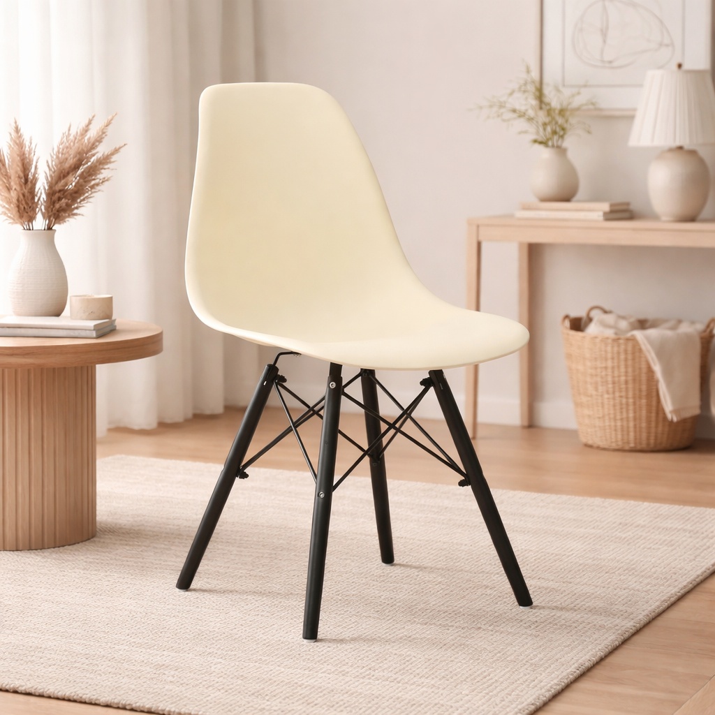 Scaun stil scandinav, Artool, Osaka, PP crem, picioare lemn negru, 46x54x81 cm