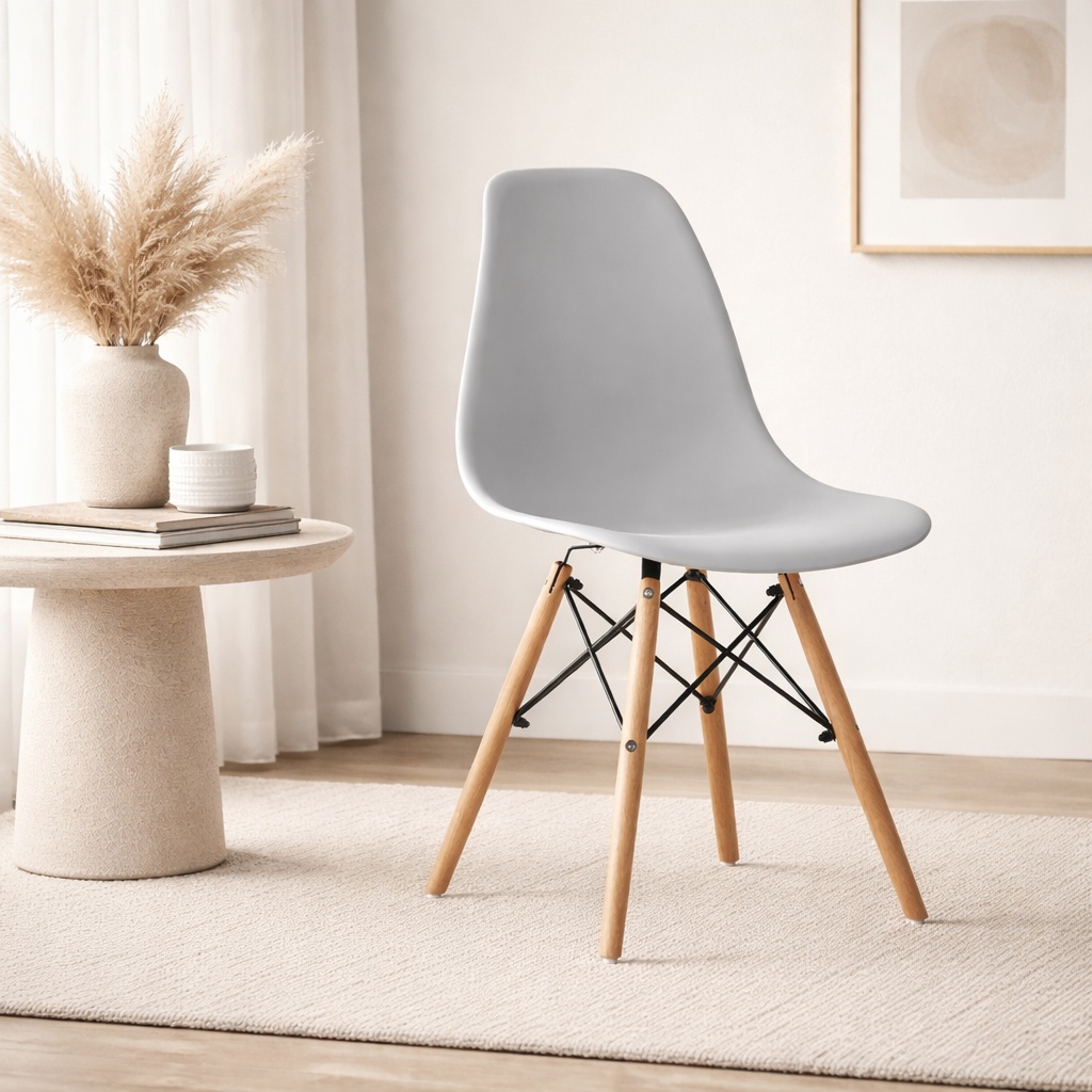 Scaun stil scandinav, Artool, Osaka, PP gri, picioare lemn natur, 46x54x81 cm