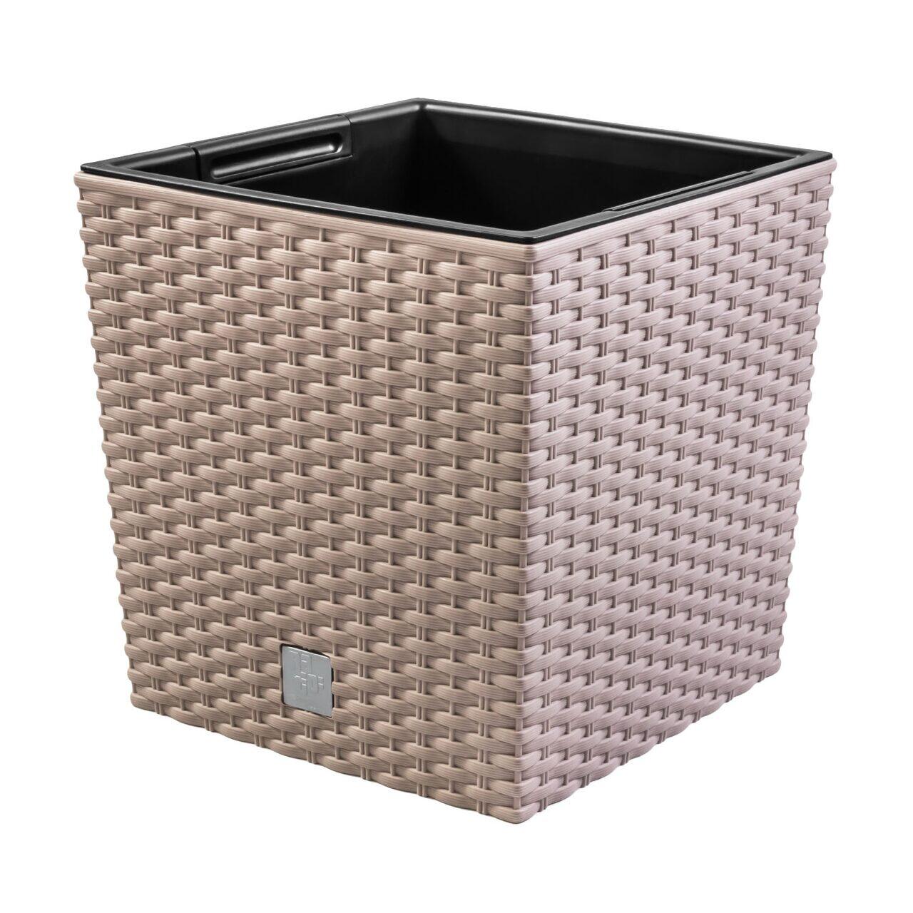 Set 2 ghivece de flori, Rato Low, imitatie ratan, patrate, 32x32x32.5 cm, cafeniu, Prosperplast
