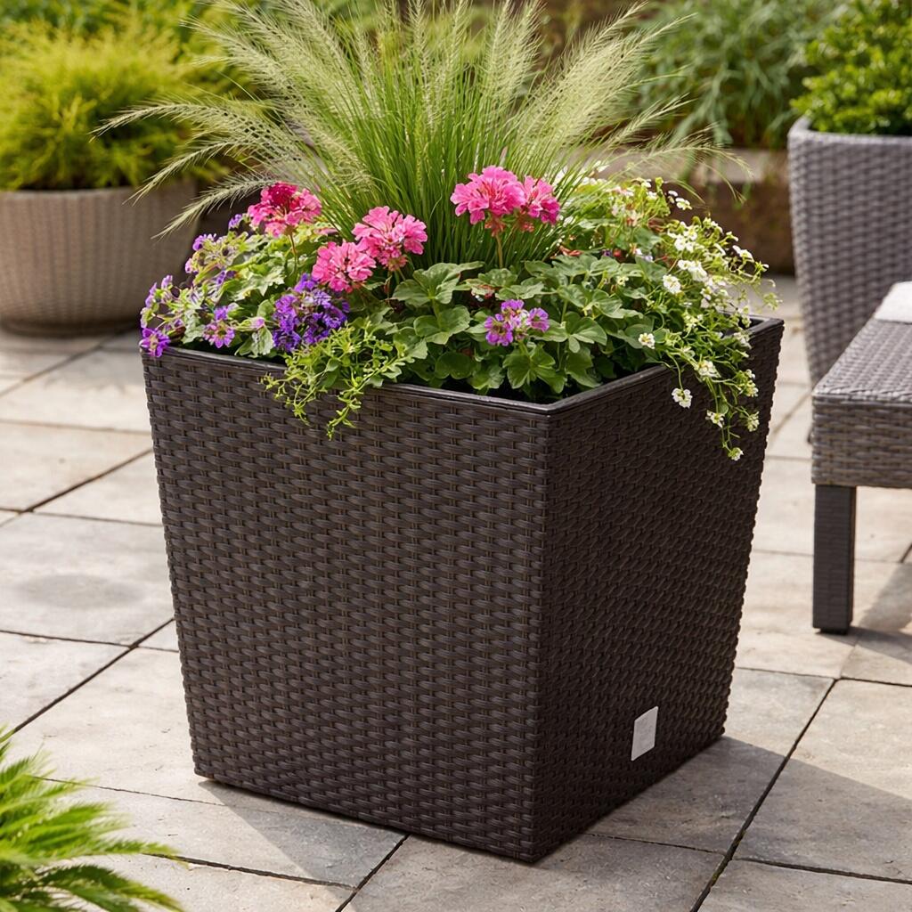 Set 2 ghivece de flori, Rato Low, imitatie ratan, patrate, 40x40x40.8 cm, maro, Prosperplast