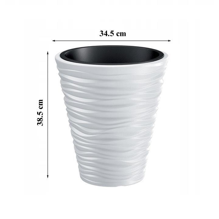 - Design elegant si echilibrat: Forma rotunda si textura ce imita dunele de nisip transforma ghivecele in elemente decorative rafinate