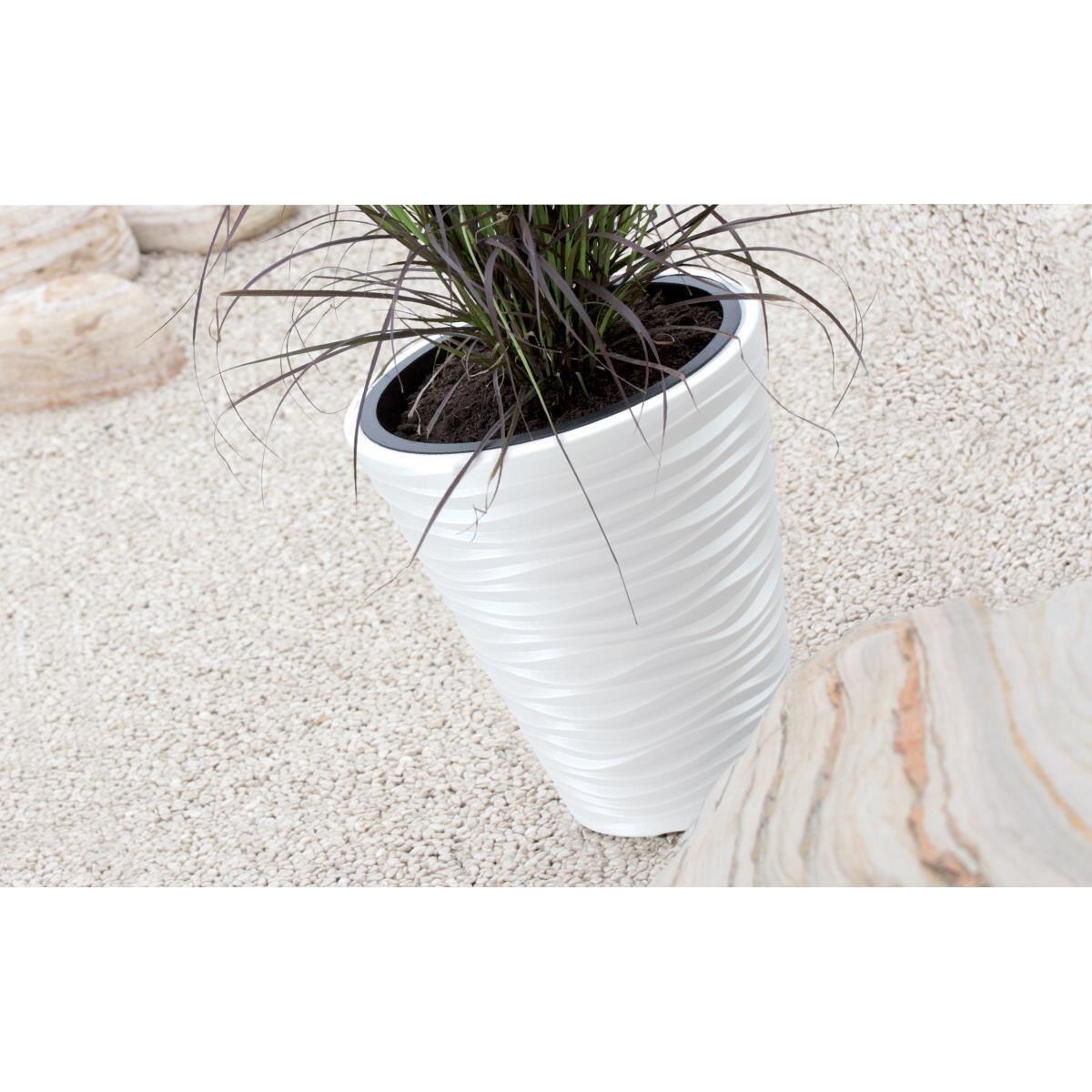 - Textura ce imita dunele de nisip aduce un plus de rafinament, transformand ghivecele din simple recipiente functionale in adevarate elemente decorative.