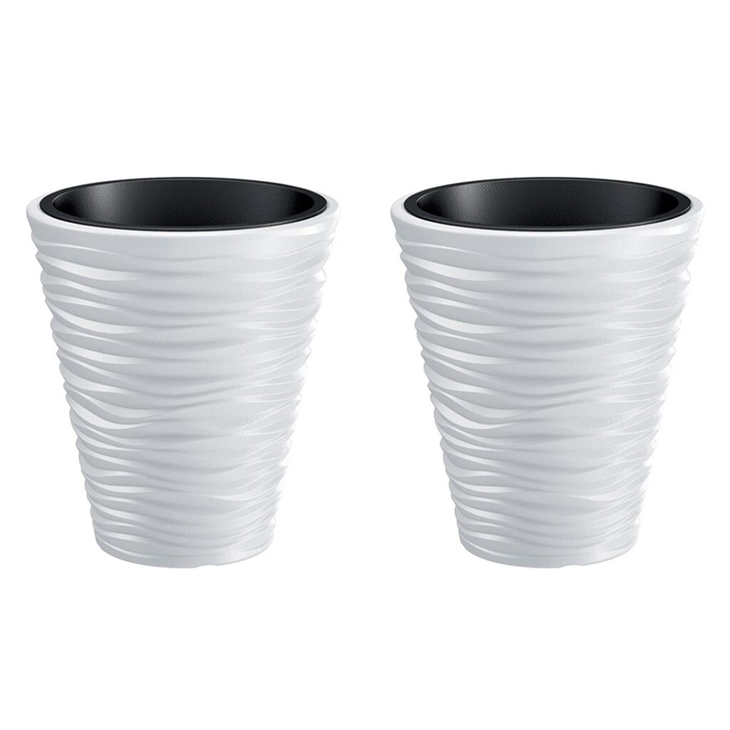 Set 2 ghivece de flori, Sand, rotunde, 38.8x43.6 cm, alb, Prosperplast