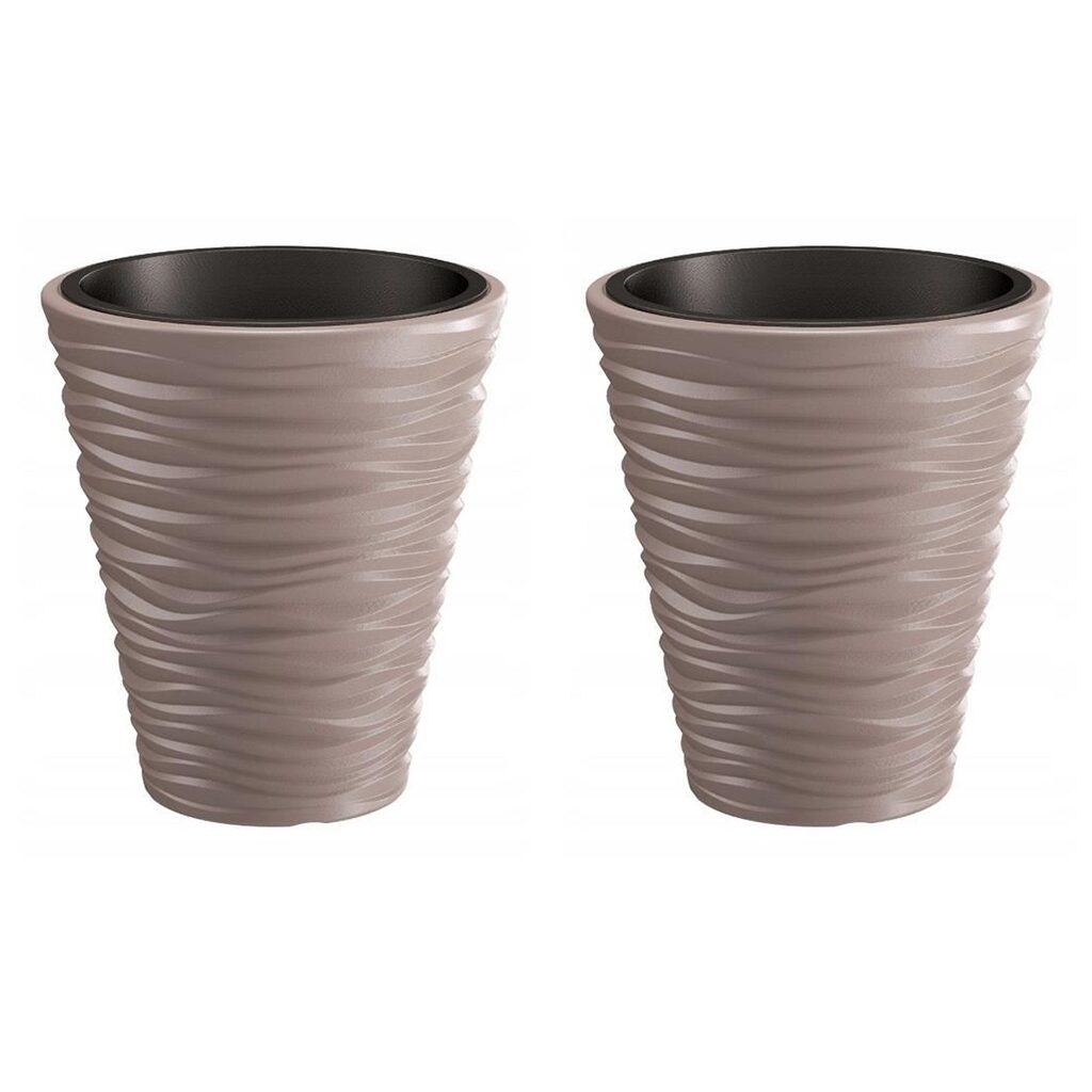 Set 2 ghivece de flori, Sand, rotunde, 38.8x43.6 cm, cafeniu, Prosperplast