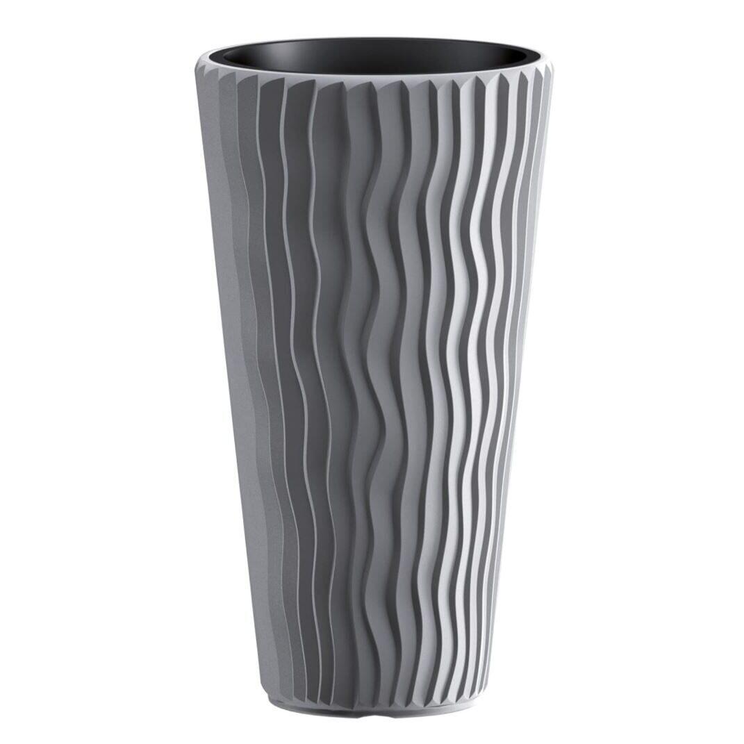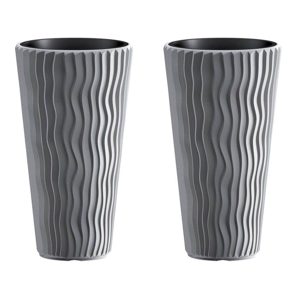 Set 2 ghivece de flori, Sandy Slim, rotunde, inalte, 29.7x53.1 cm, gri, Prosperplast