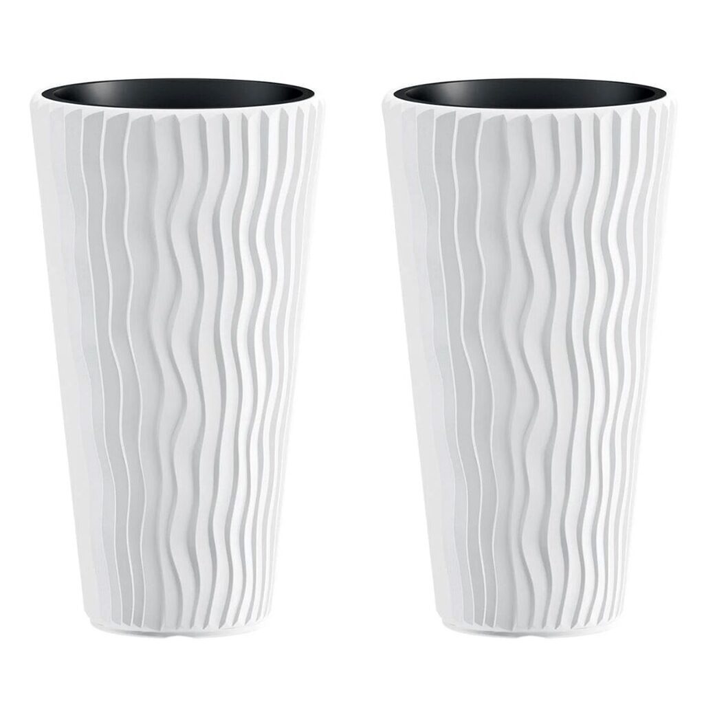Set 2 ghivece de flori, Sandy Slim, rotunde, inalte, 34.9x62 cm, alb, Prosperplast