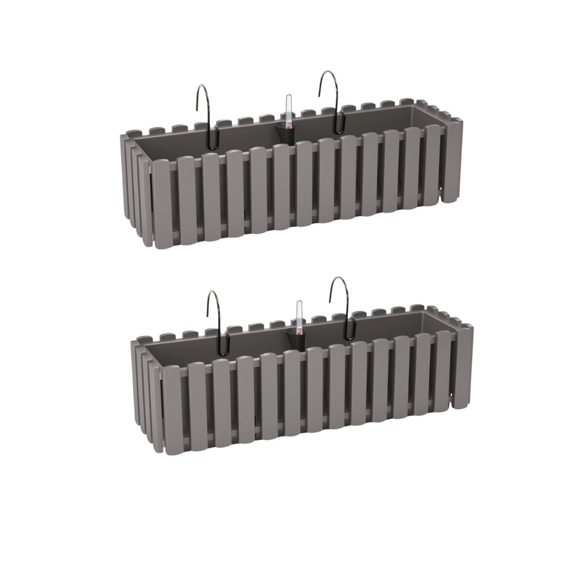 Set 2 Jardiniere decorative cu suport metalic, Boardee Fencycase W, gri, 58x18x16.2 cm