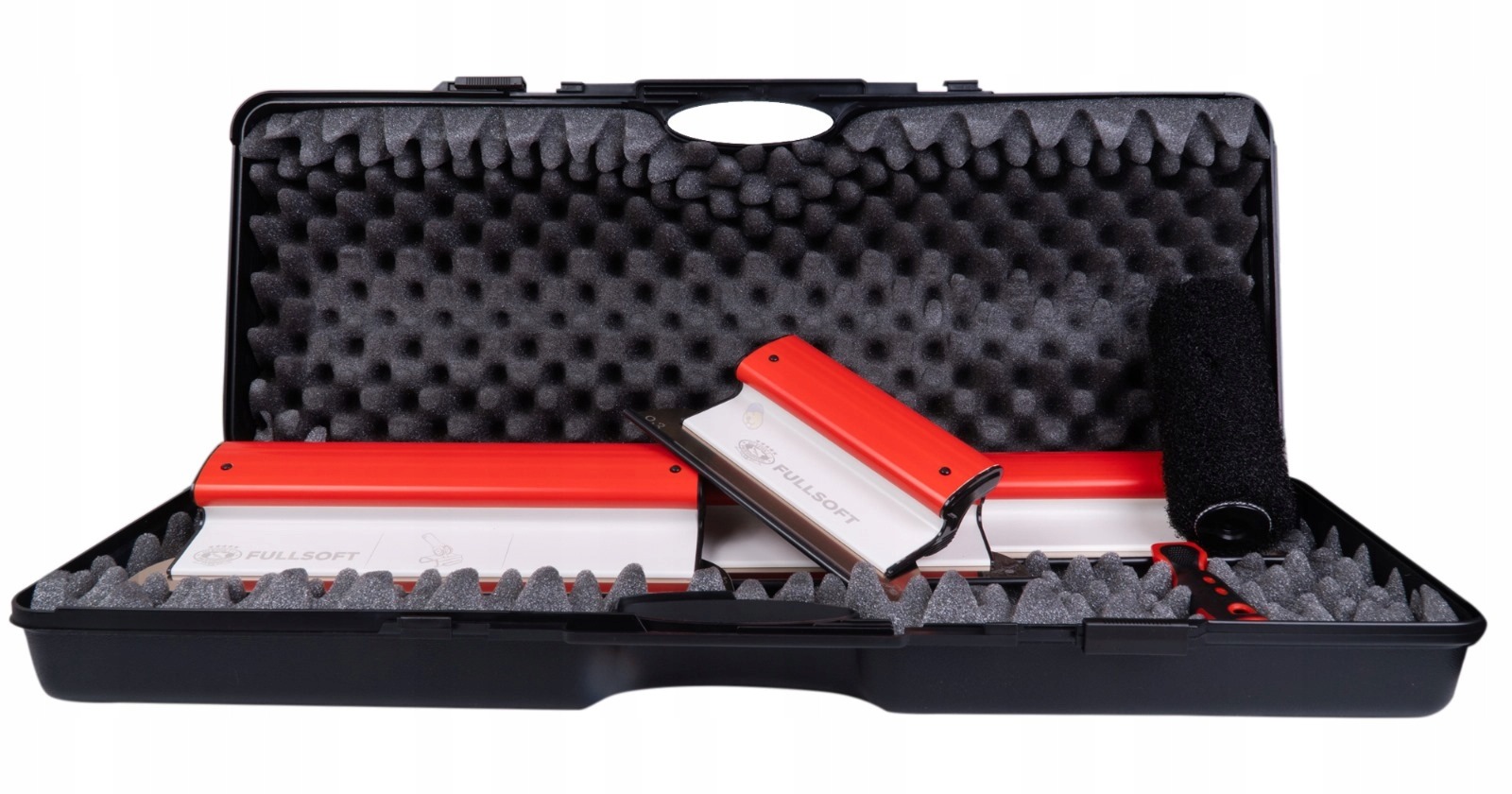 Set 4 gletiere profesionale, lama inox 0.3 mm, 25, 40, 60, 80 cm, rola gletuit, geanta, Fullsoft, Olejnik