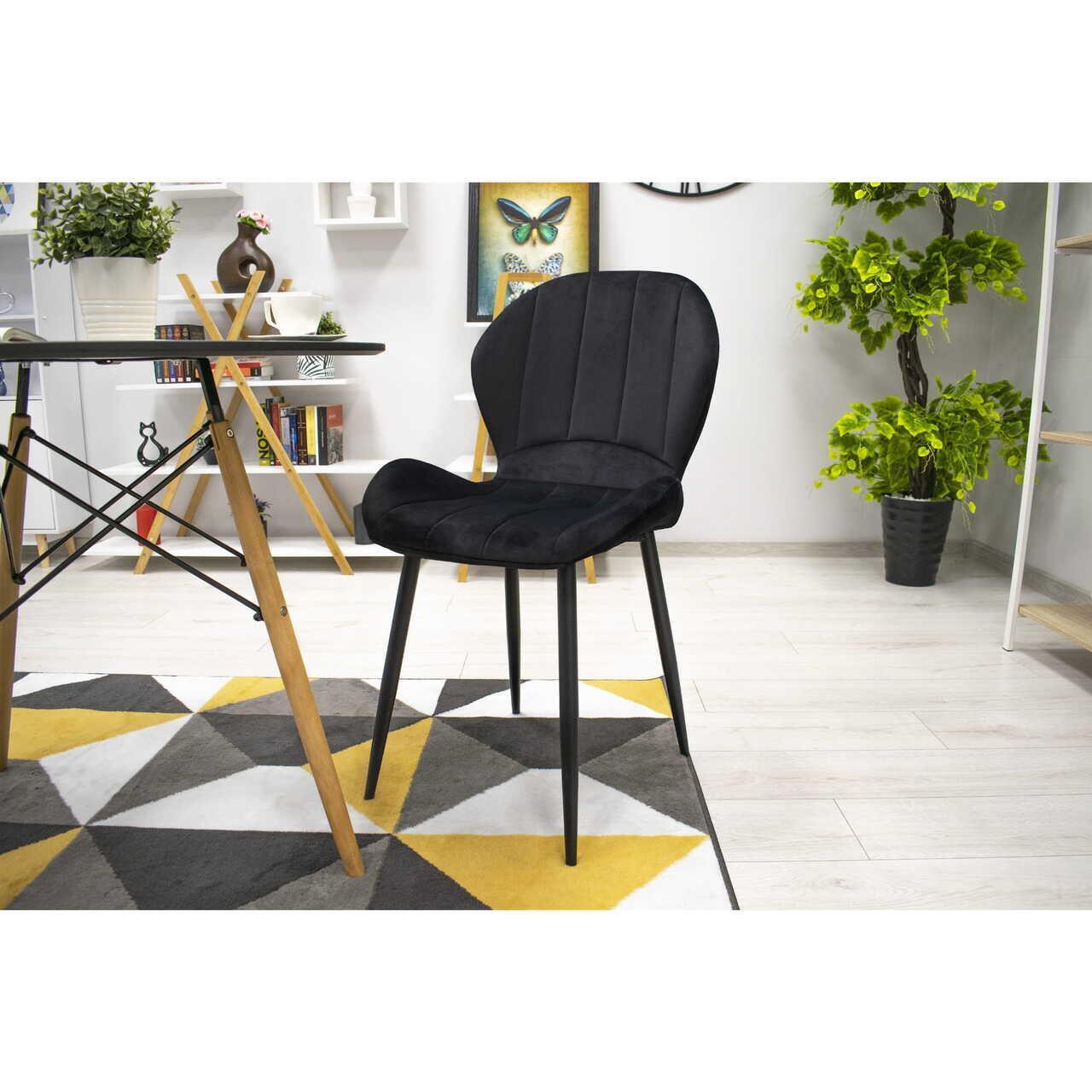 Scaune bucatarie/living, set 4 buc, Artool, Terni, catifea, metal, negru, 50x62x86 cm