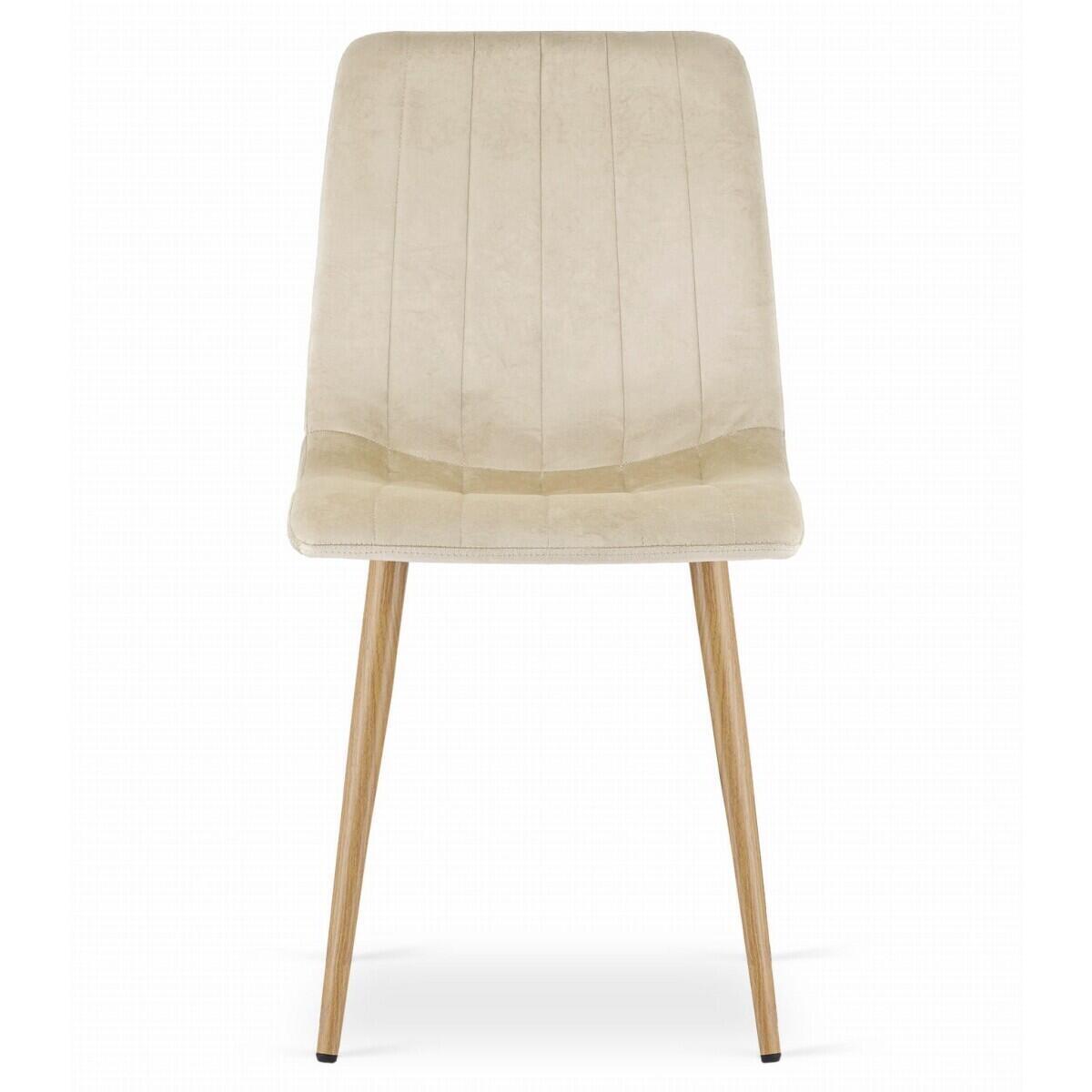 Set 4 scaune bucatarie/living, Lava, catifea, metal, bej deschis si natur, 45x55x86 cm