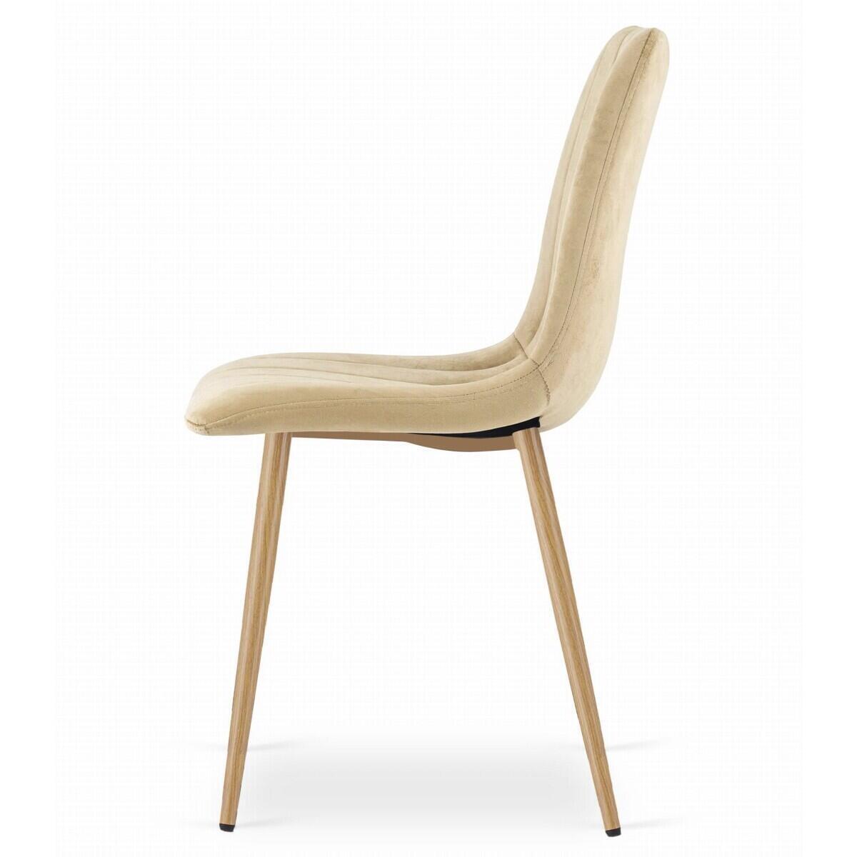 Set 4 scaune bucatarie/living, Lava, catifea, metal, bej si natur, 45x55x86 cm
