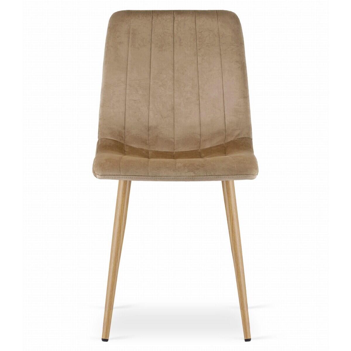 Set 4 scaune bucatarie/living, Lava, catifea, metal, maro si natur, 45x55x86 cm