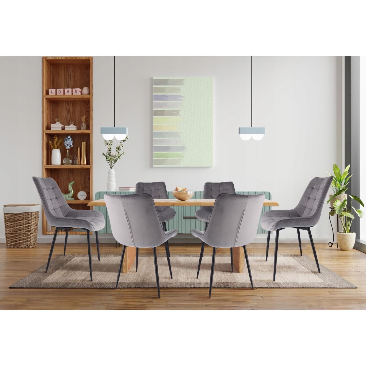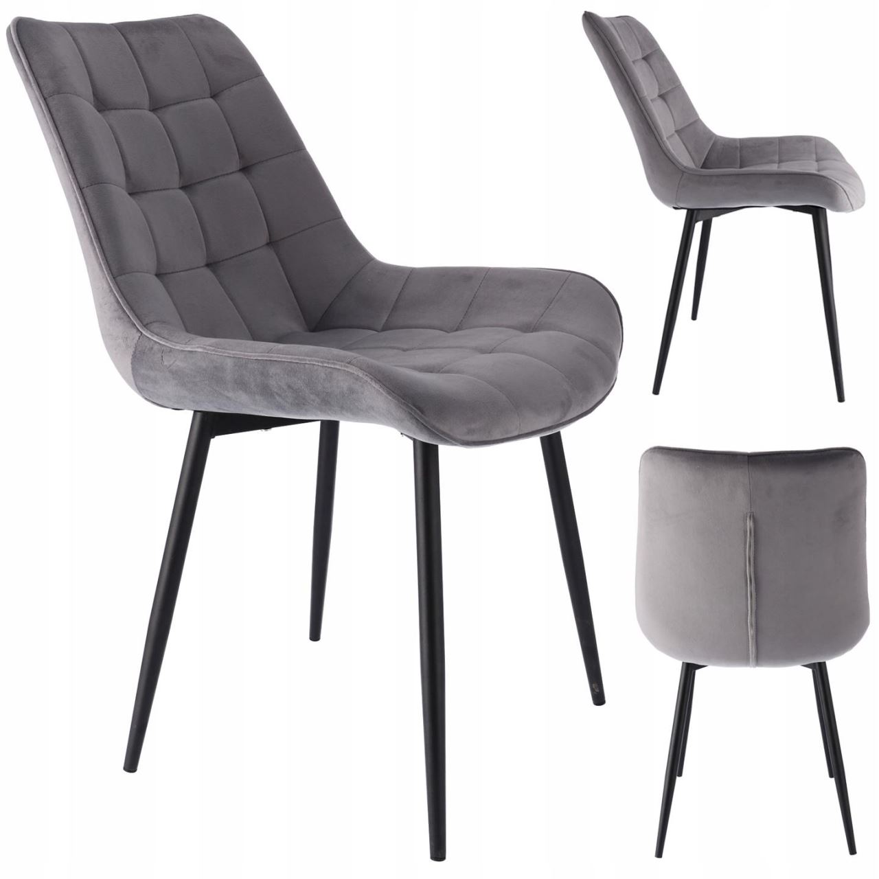 Scaune stil scandinav, metalic, catifea, gri, set 4 buc, 53x63x83 cm, Misty