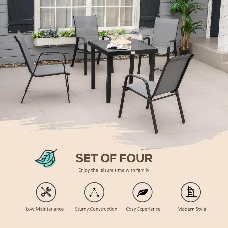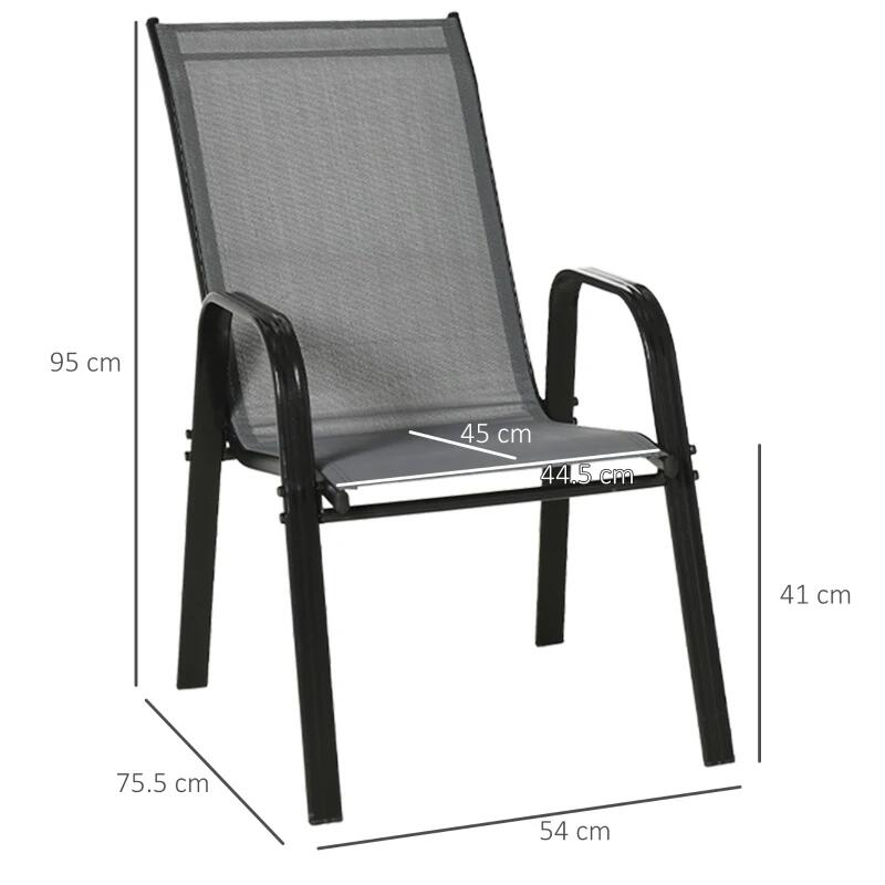 Set 4 scaune gradina/terasa/balcon, cadru metalic, gri, max 150 kg, 54x75.5x95 cm