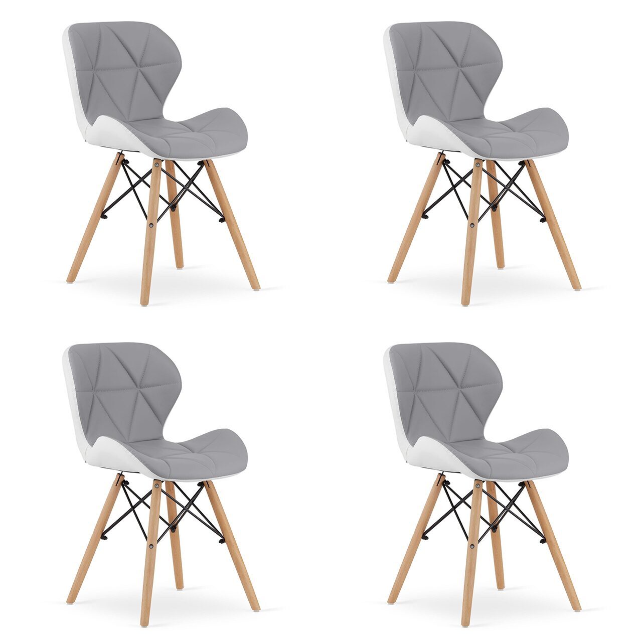 Set 4 scaune stil scandinav, Artool, Lago, piele ecologica, lemn, gri si alb, 47x52x73 cm