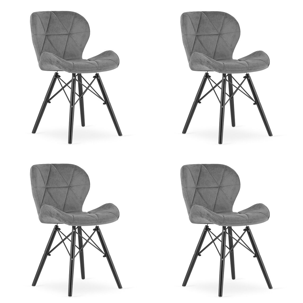 Set 4 scaune stil scandinav, Artool, Lago Velvet, catifea, lemn, gri si negru, 47x36x73.5 cm