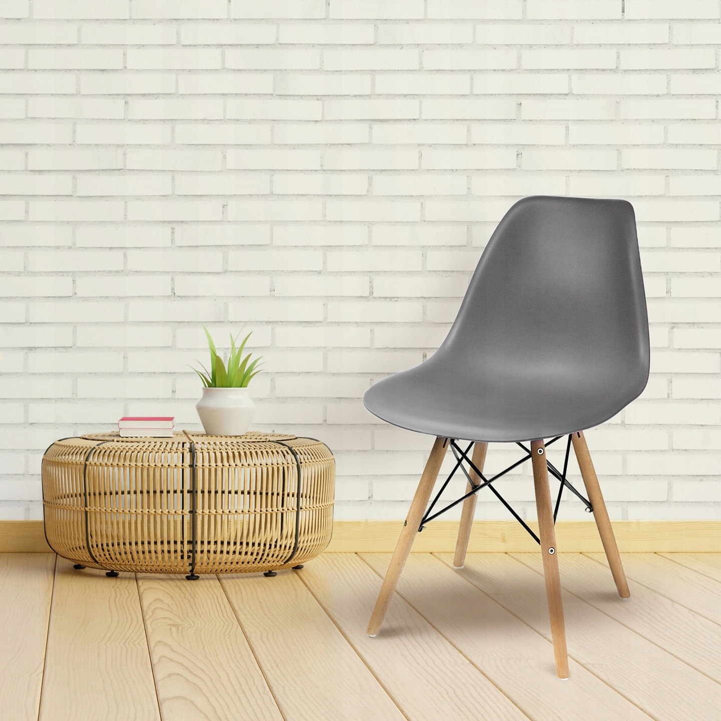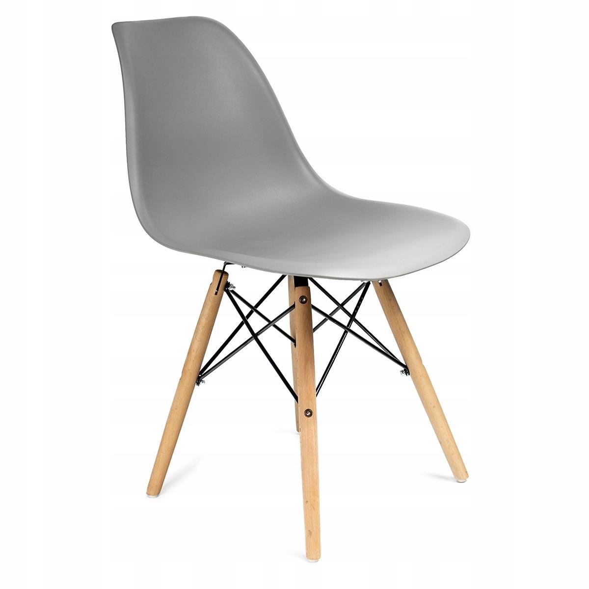 Scaune stil scandinav, plastic, lemn, gri, set 4 buc, 46x52x81 cm, Eva