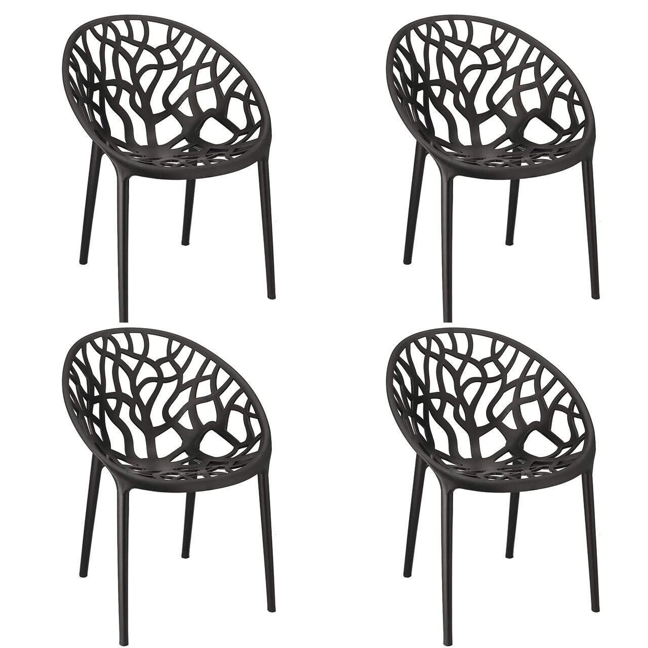 Set 4 scaune terasa/bistro, Jumi, Albero, PP, negru, 58x56x80 cm