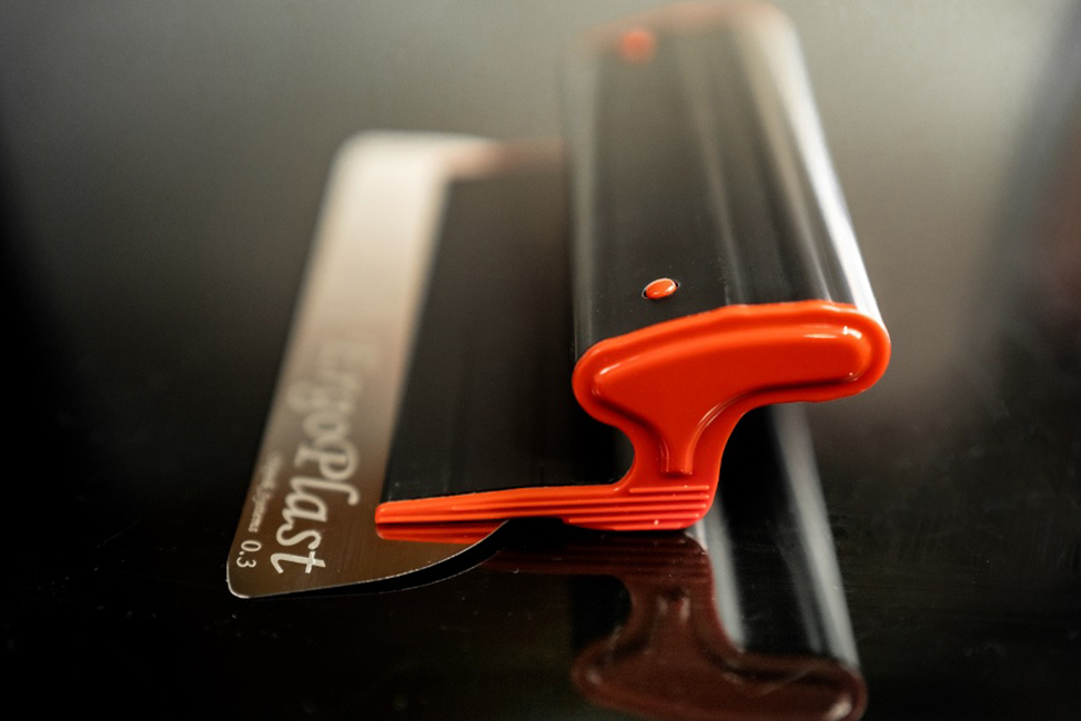 - Flexibilitatea lamei foarte subtiri, confectionate din inox de cea mai buna calitate, permite nivelarea materialelor de umplere si de finisare, permitand aplicarea materialului intr-un strat foarte subtire. Netezeste perfect suprafata care este, practic, gata de amorsare si vopsire, oferind precizie si cel mai fin finisaj si eliminand practic slefuirea. Prin structura flexibila a lamei, aceasta pastreaza materialul pe suprafata de lucru si pe lama, minimalizand astfel risipa de material si nevoia de curatare.