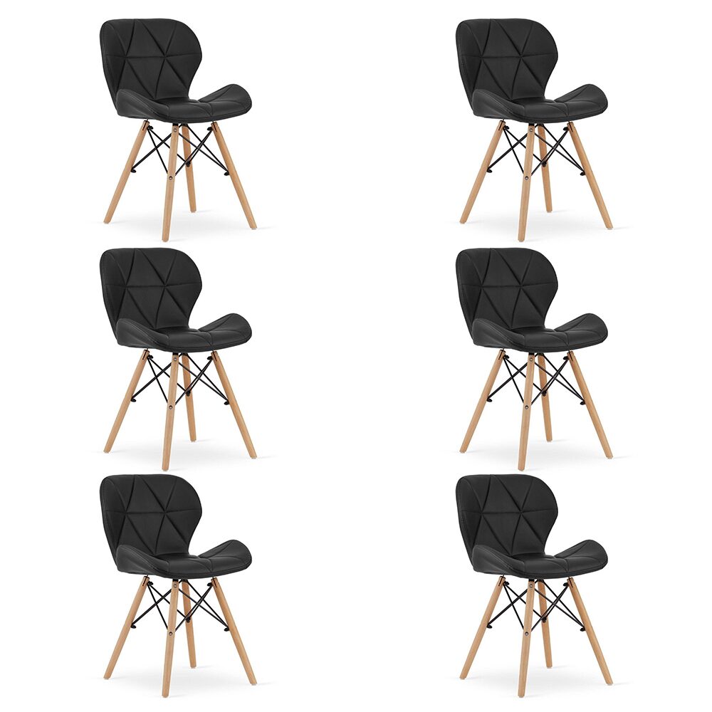 Set 6 scaune bucatarie/living, Artool, Lago, piele ecologica, lemn, negru, 47x38x73 cm
