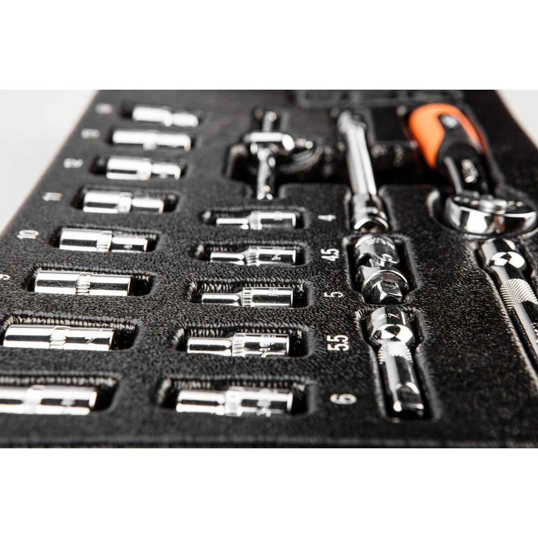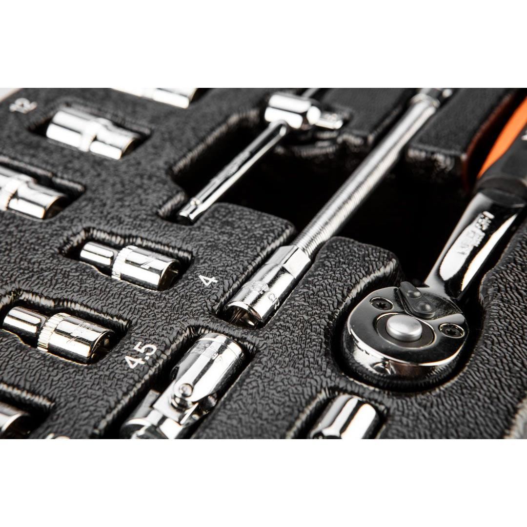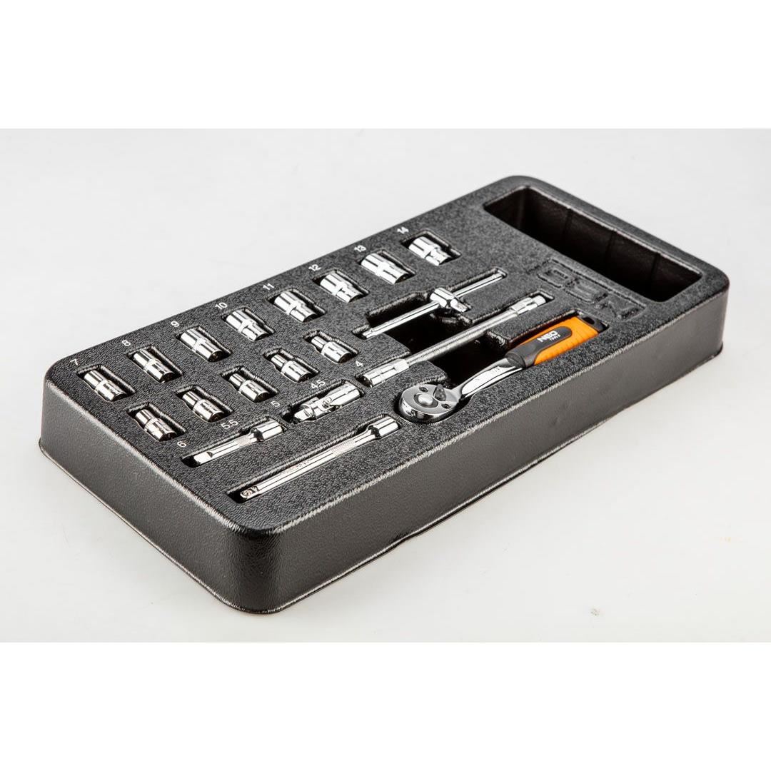 Set capete tubulare scurte cu clichet, pentru dulap mobil, 1/4", 4-14 mm, 19 piese, NEO