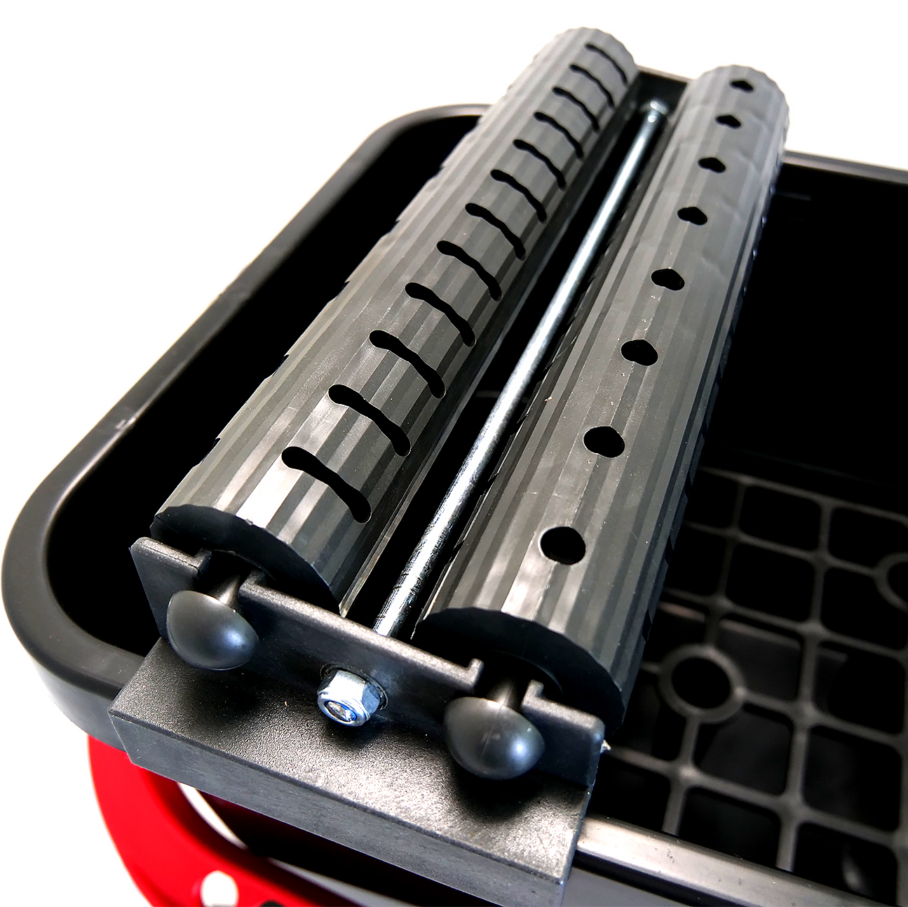 - galeata de 20 de litri - aceasta este echipata cu un gratar integrat pentru scurgerea eficienta a sedimentelor, care vor ramane in partea de jos a galetii. Pe galeata sunt montate si 2 role din plastic ce favorizeaza scurgerea surplusului de apa din drisca cu burete cu care se spala rosturile. De asemenea, galeata este echipata cu 4 roti si un maner practic, pentru a asigura un transport facil in zona de lucru;