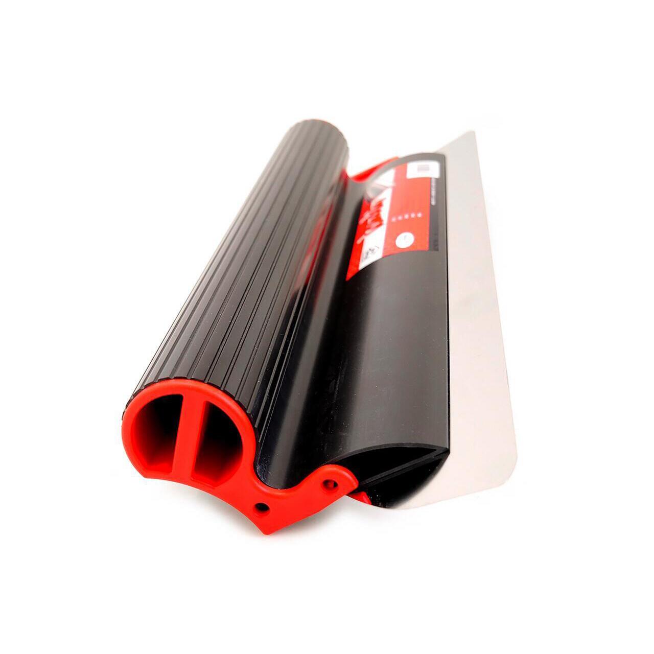 - Flexibilitatea lamei foarte subtiri, confectionate din inox de cea mai buna calitate, permite nivelarea materialelor de umplere si de finisare, permitand aplicarea materialului intr-un strat foarte subtire. Netezeste perfect suprafata care este, practic, gata de amorsare si vopsire, oferind precizie si cel mai fin finisaj, eliminand practic slefuirea. Prin structura flexibila a lamei, aceasta pastreaza materialul pe suprafata de lucru si pe lama, minimalizand astfel risipa de material si nevoia de curatare.