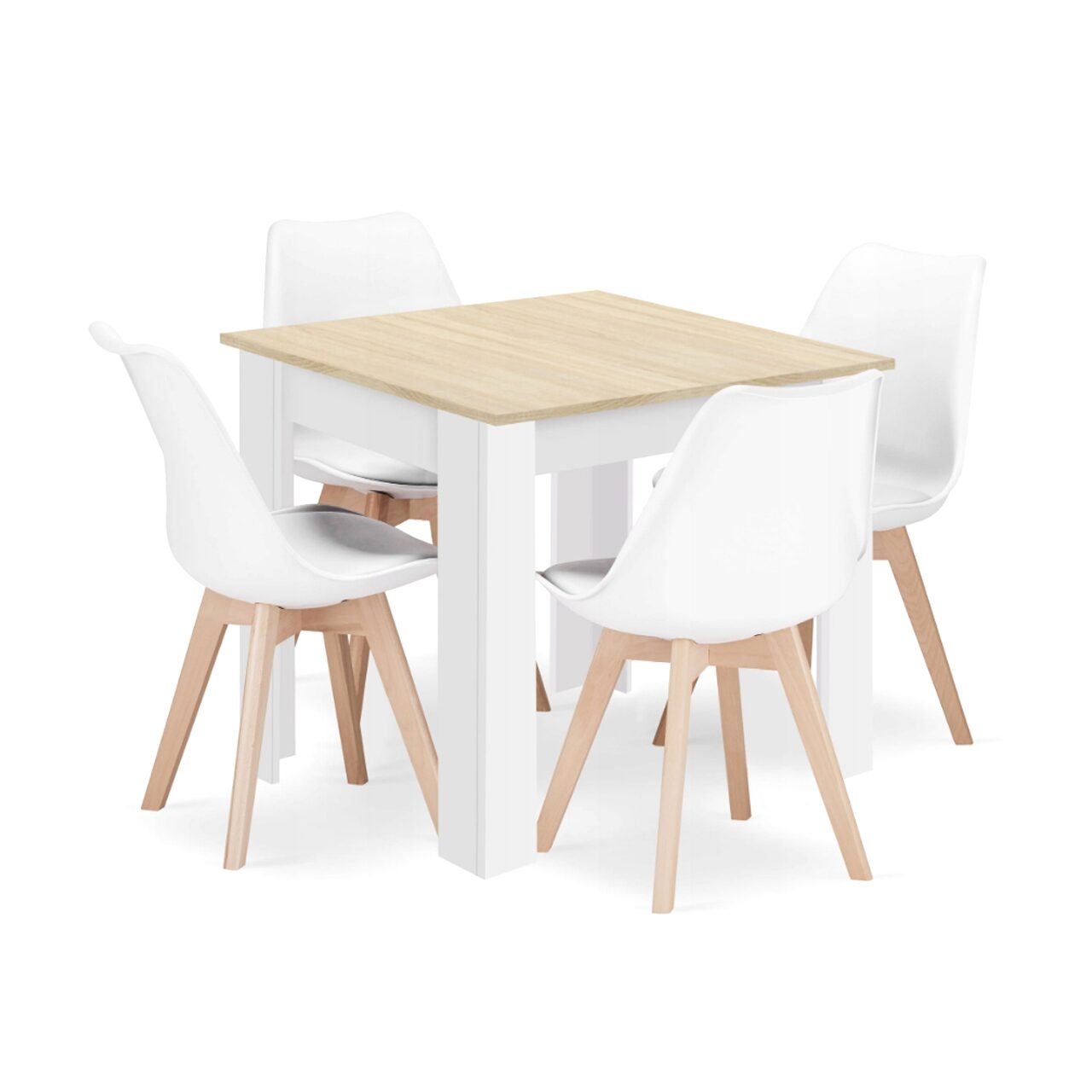 Set masa pentru sufragerie/living + 4 scaune Mark alb, Artool, lemn, stejar sonoma si alb, 80x80x75 cm
