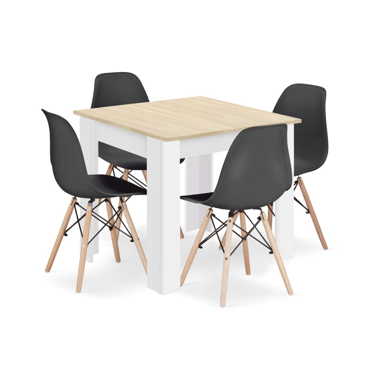 Set masa pentru sufragerie/living + 4 scaune Osaka negru, Artool, lemn, stejar sonoma si alb, 80x80x75 cm