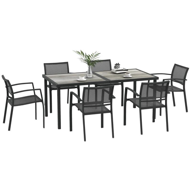 Set mobilier gradina/terasa, gri, efect lemn, 1 masa, 6 scaune, Payton
