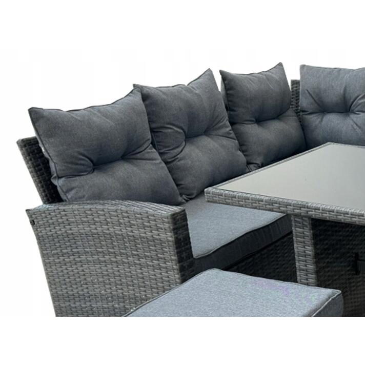 - Pachetul include o masa, doi tabureti si doua canapele asortate care se conecteaza formand o canapea de colt.