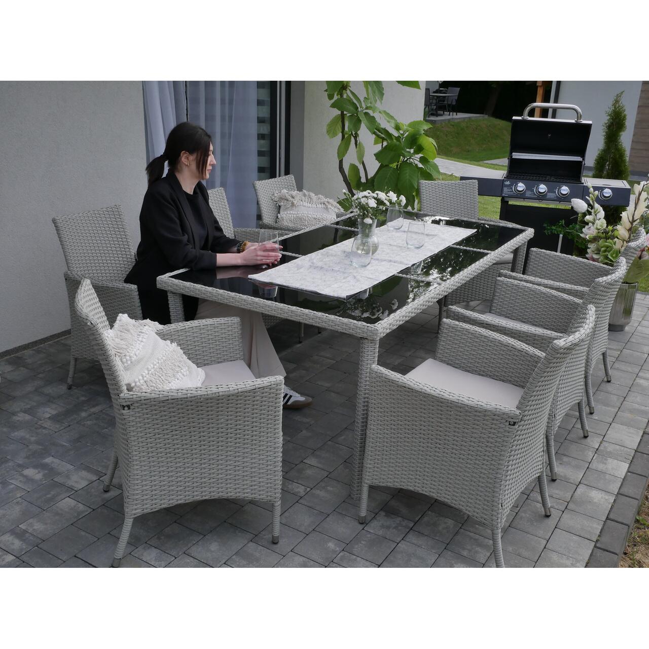 Set mobilier gradina/terasa, gri, ratan sintetic, 1 masa, 8 fotolii, Locarno