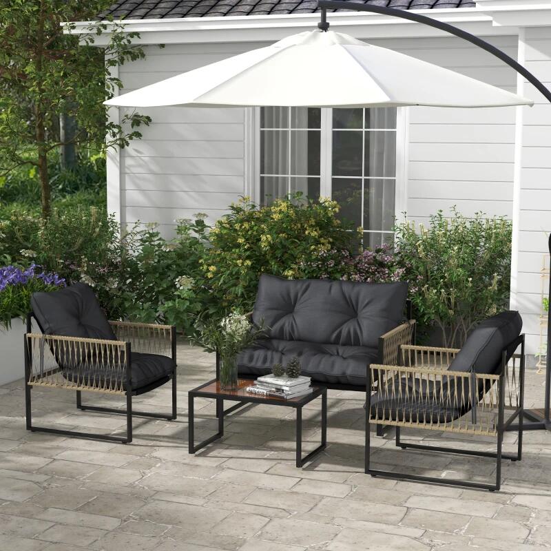 - Reprezinta setul perfect de mobilier pentru gradina sau terasa dumneavoastra! Va deveni cu siguranta locul in care va veti relaxa alaturi de familie sau prieteni in aer liber, savurand bautura preferata. Include o canapea, doua fotolii si o masuta de cafea asortata.