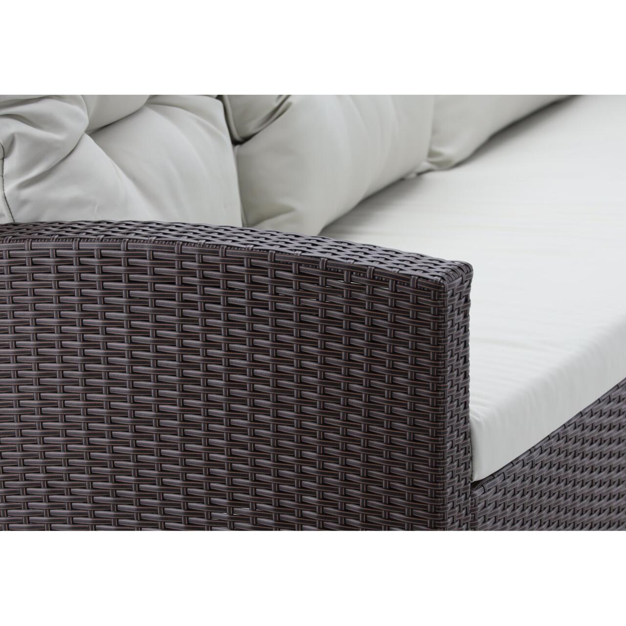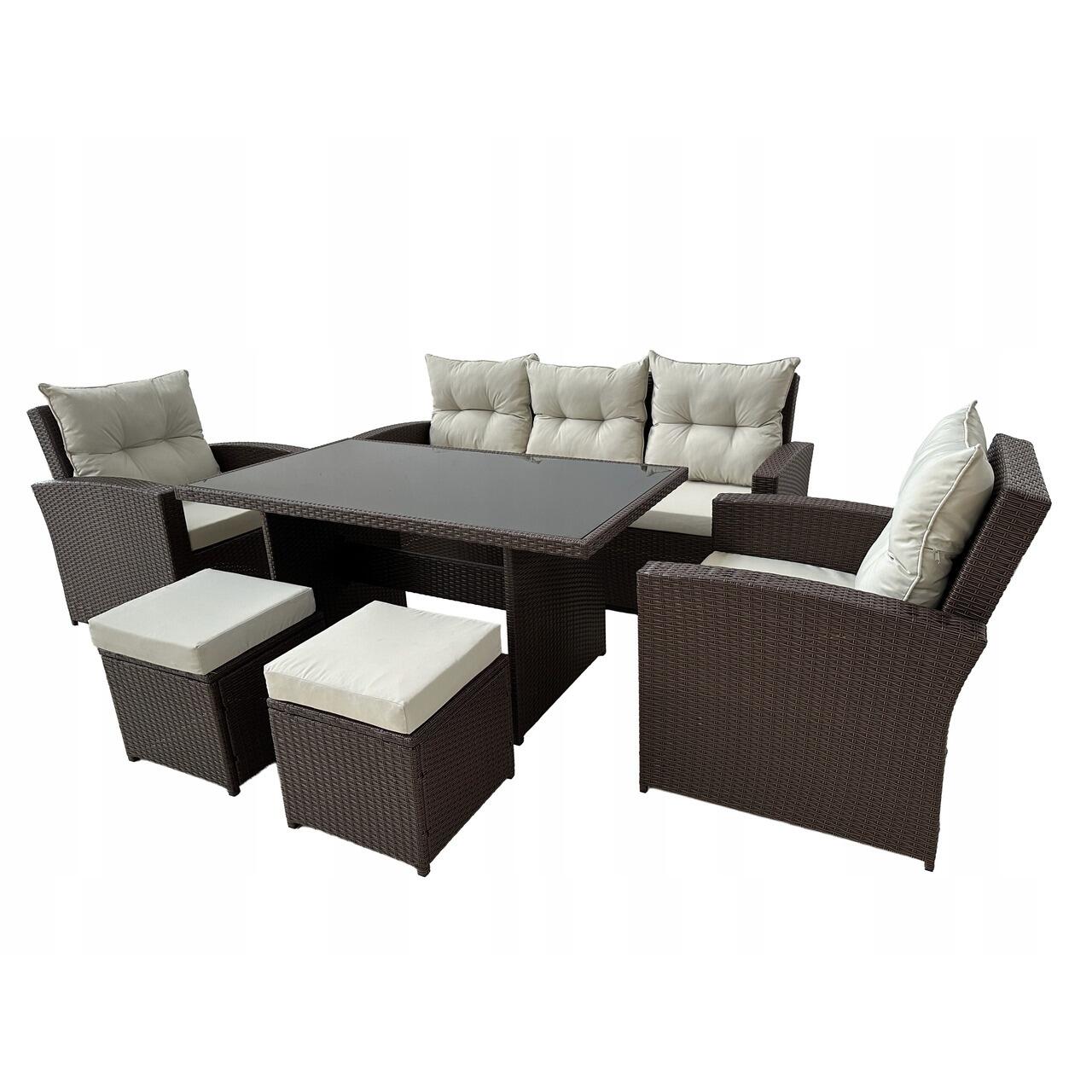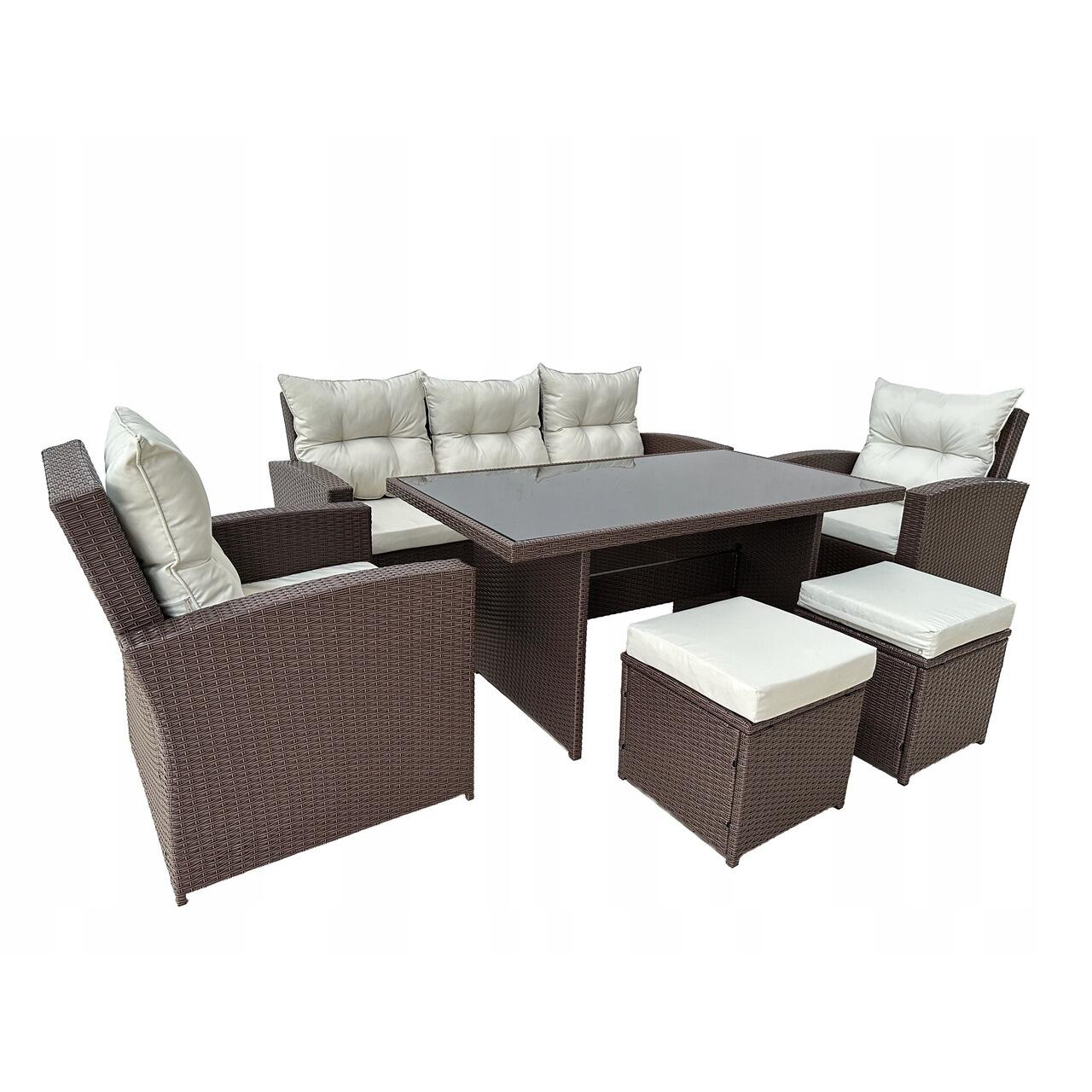 Set mobilier gradina/terasa, maro si bej, ratan sintetic, 1 masa, 2 scaune, 2 tabureti, 1 canapea, Dolores